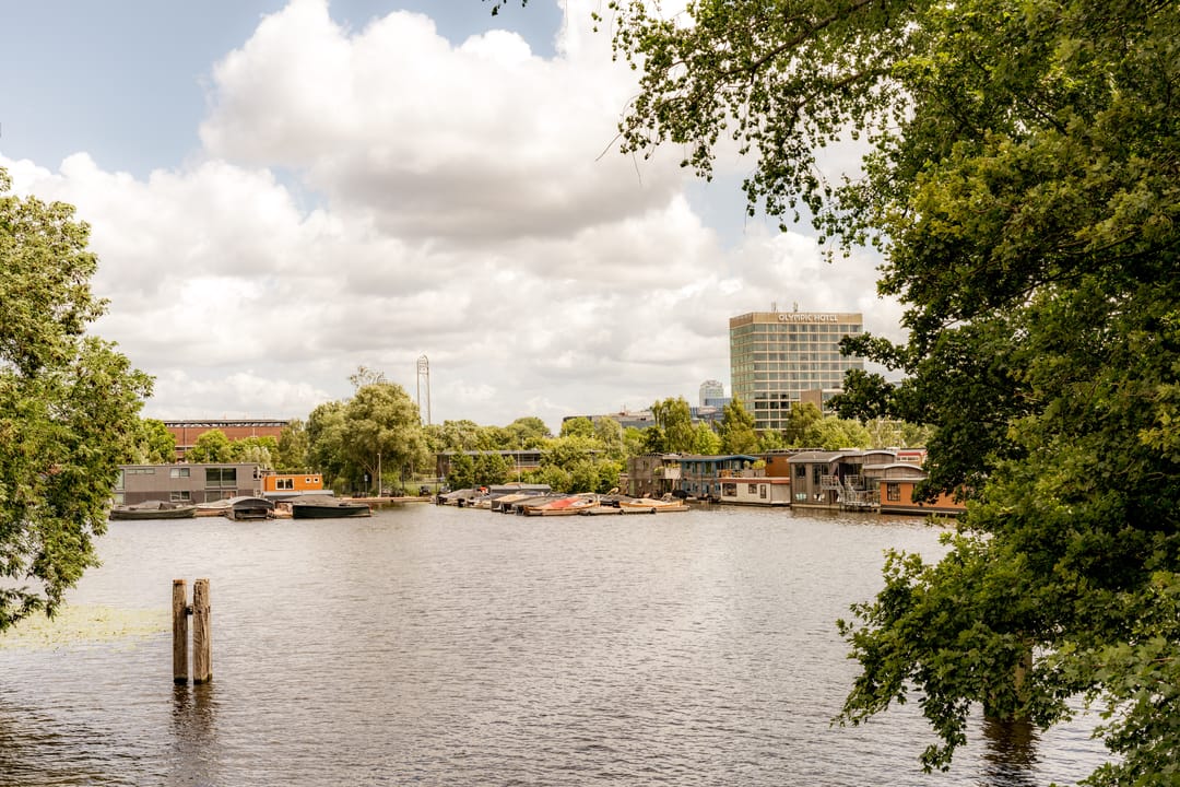 • Uitzicht op park, water (Schinkel) en Olympisch Stadion
