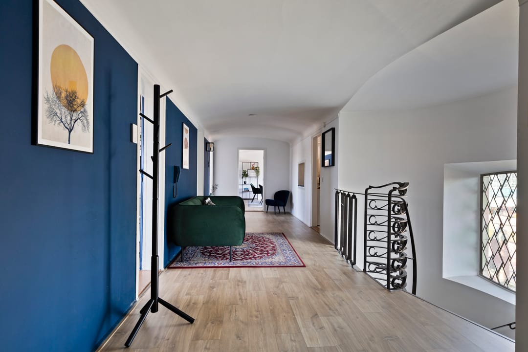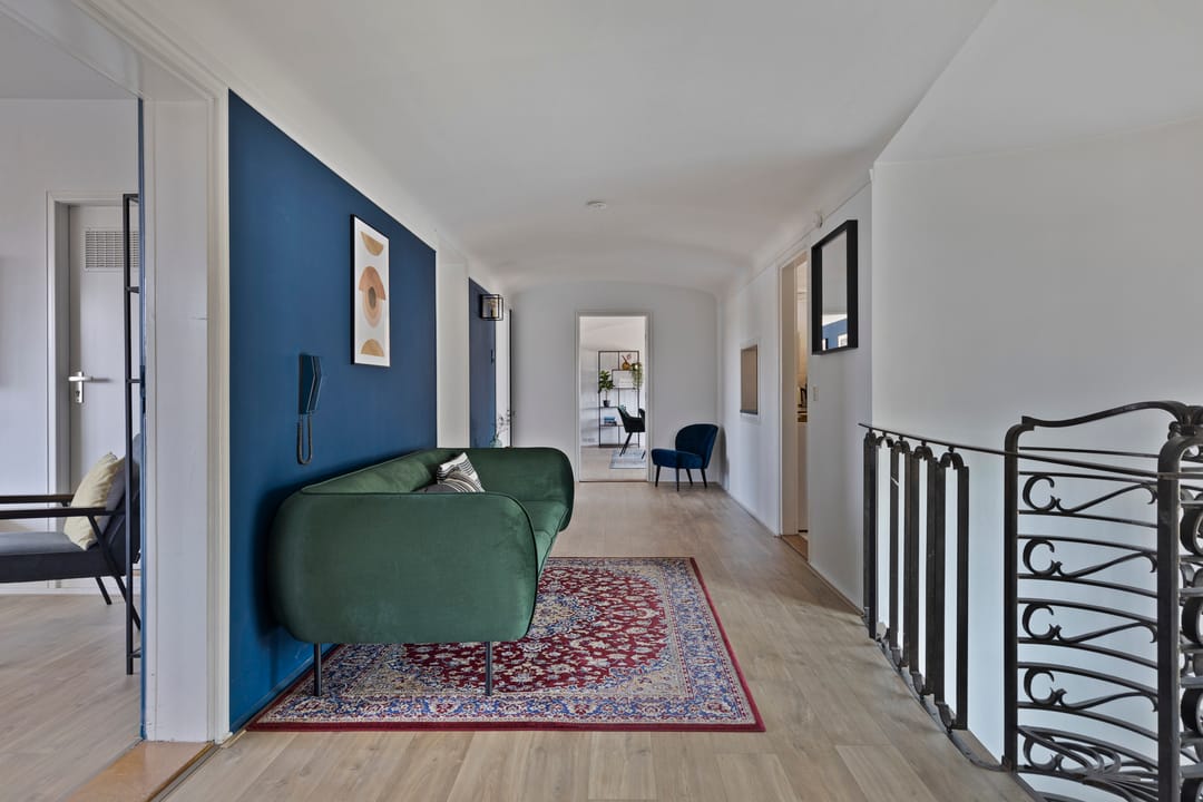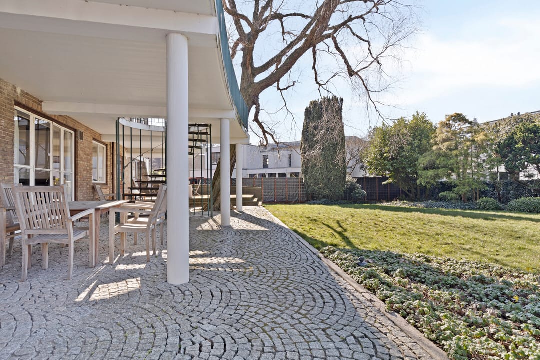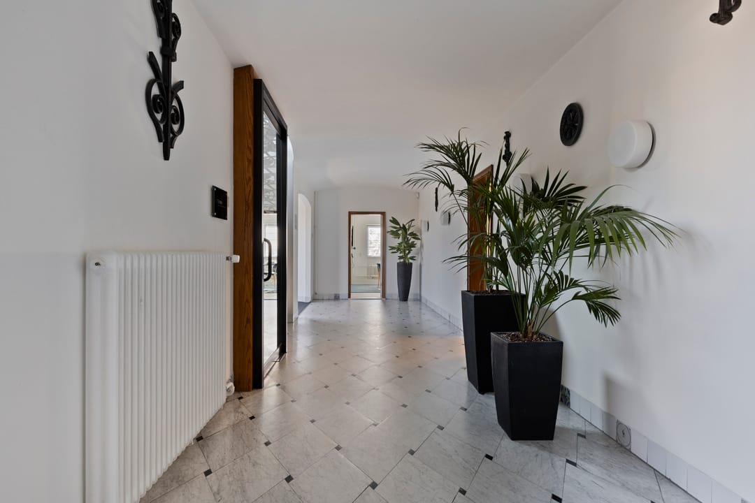 Bij binnenkomst wordt je onmiddellijk gegrepen door de sfeer van de indrukwekkende hal met fraaie trapopgang, het bijzondere tegelwerk als plint van de vloeren en het glas in lood. Alle ruimtes zijn riant van uitvoering en hebben een fantastisch uitzicht over de ruime tuin en het kanaal.