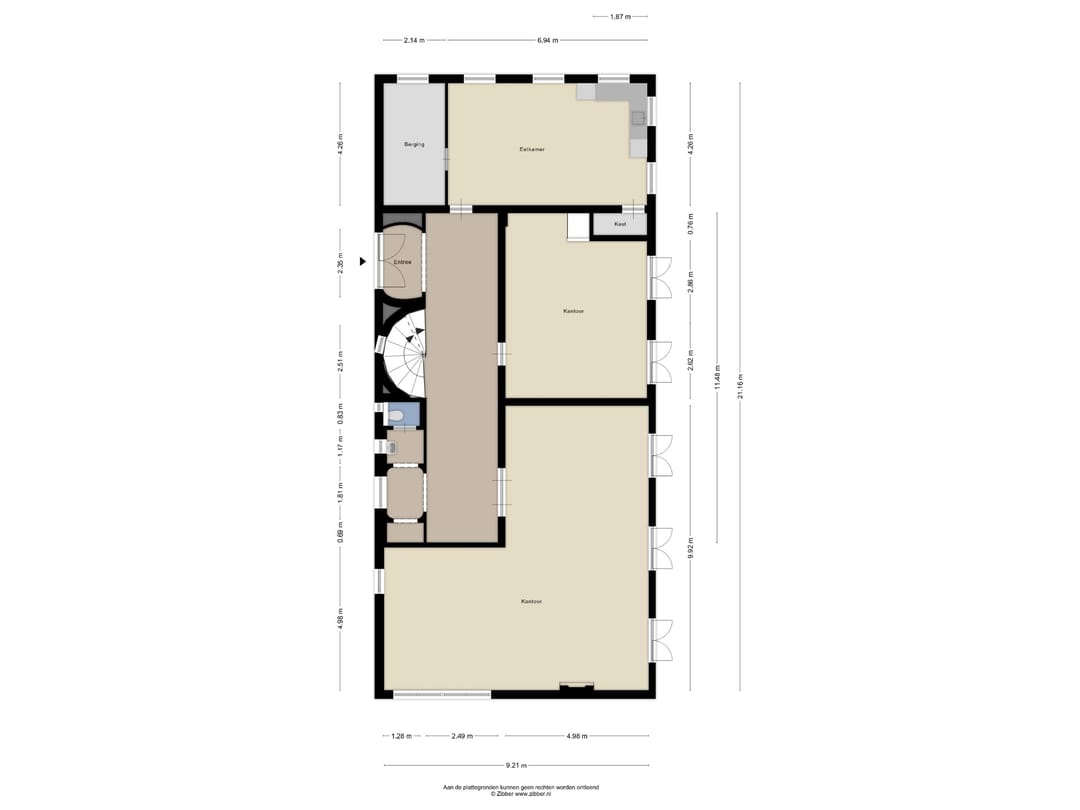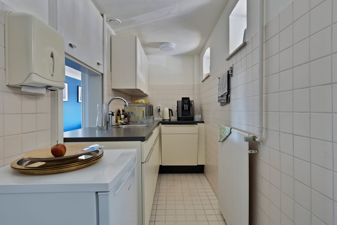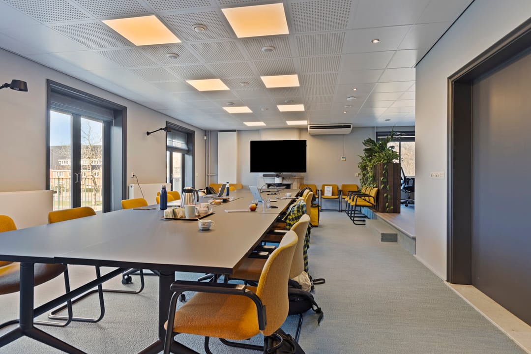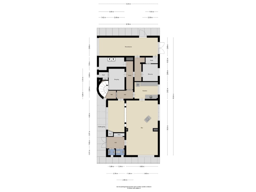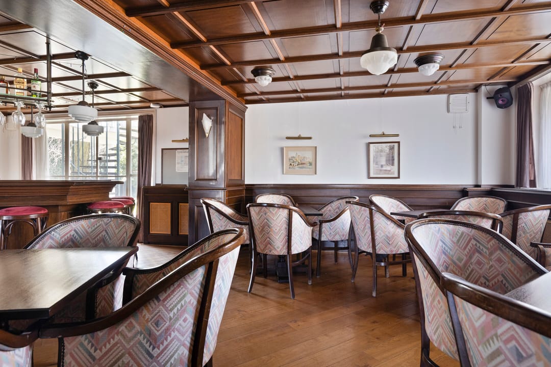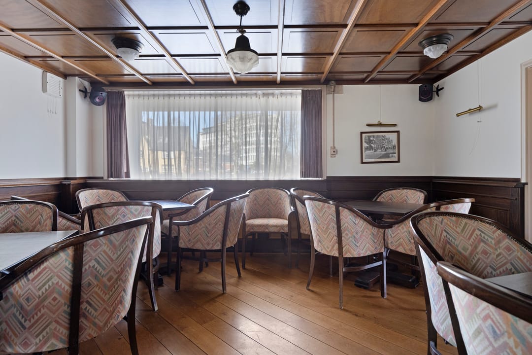 In het souterrain zijn de technische ruimten en diverse opslagruimten, de keuken is gekoppeld aan de bar met vergaderruimte, na de hal een tweetal toiletten en een afzonderlijke entree vanaf de straatzijde; Aan de tuinzijde is een ruim terras aanwezig.