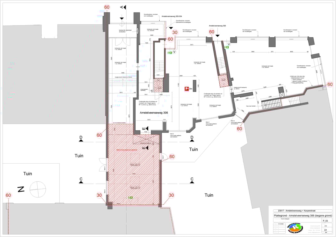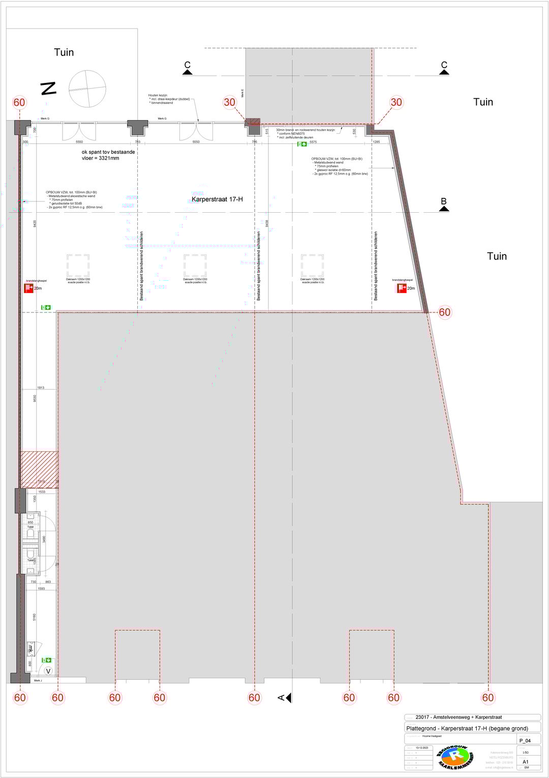 - transparante scheidingswand met openslaande deuren tussen de zijde Amstelveenseweg en zijde Karperstraat;