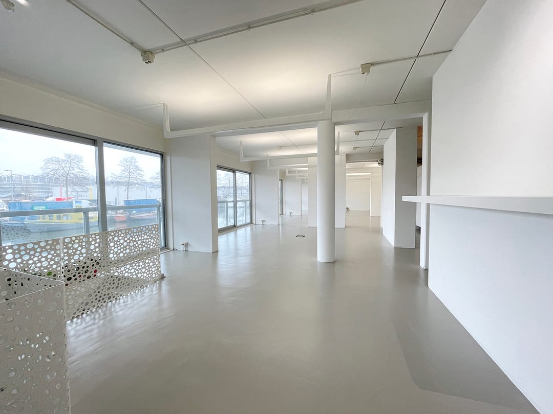 De Loswal biedt een moderne kantoorruimte van ca. 180m² op de begane grond met een eigen entree en een uniek, vrij uitzicht over het water. De ruimte beschikt over hoge raampartijen, veel daglicht en een open, flexibel in te delen vloerplan. De begane-grondligging in combinatie met de eigen entree zorgt voor een zelfstandige, herkenbare uitstraling. Daarnaast is er een praktische kelderruimte (ca. 45 m²) voor opslag of archief. Het pand ligt in een dynamische buurt met horeca, winkels en goede OV-verbindingen op loopafstand, en via de A10 ben je in enkele minuten onderweg.