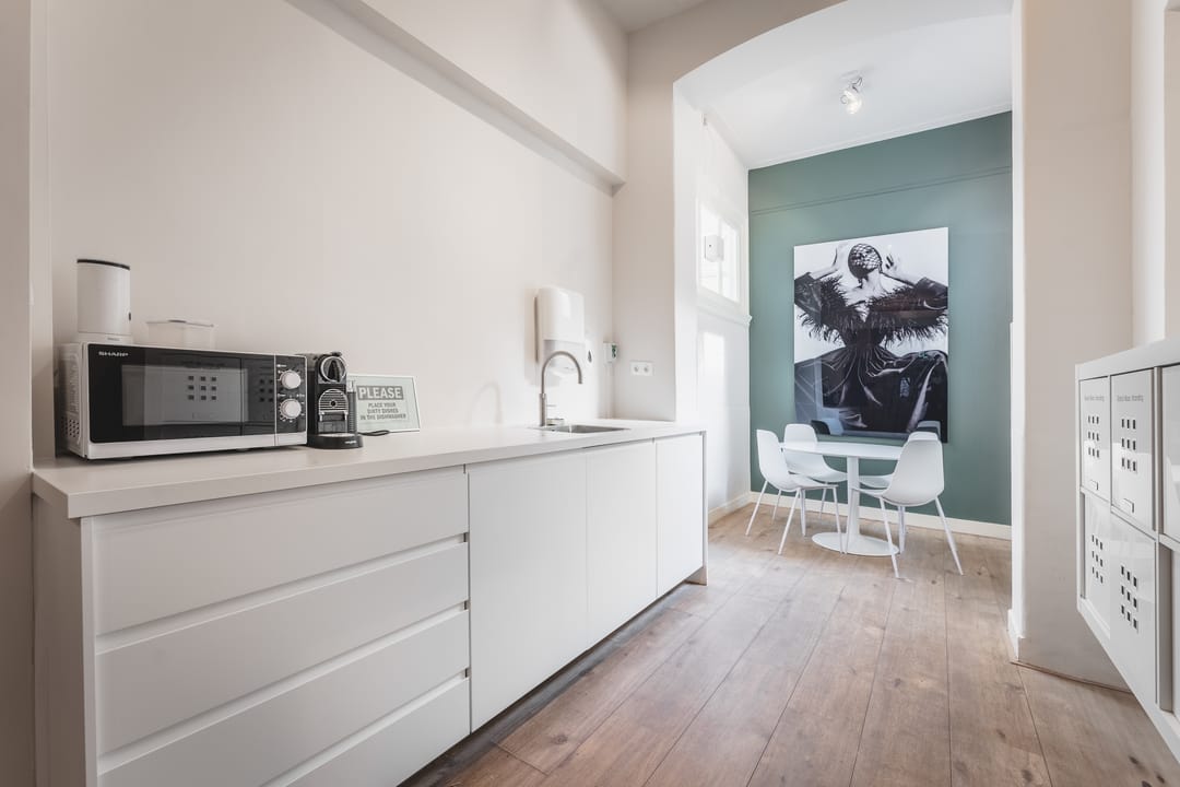- Pantry met vaatwasser en koelkast: gedeeld met andere gebruikers.