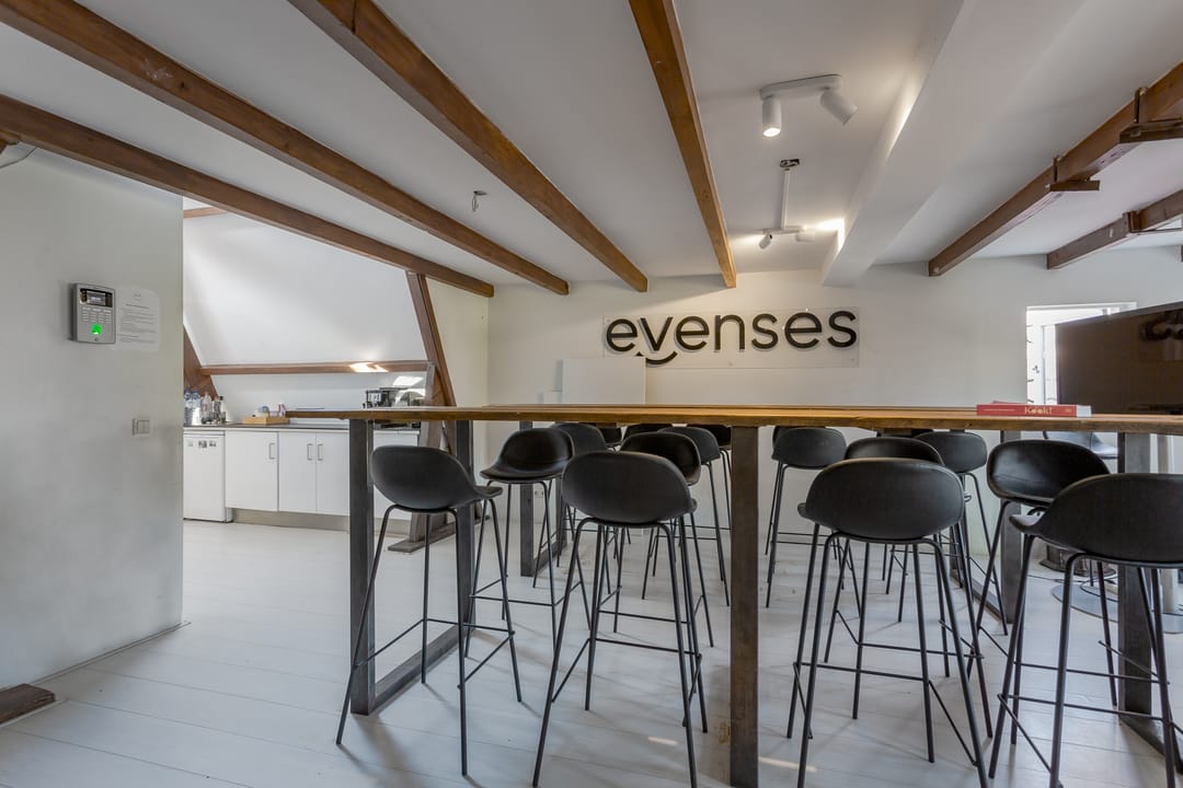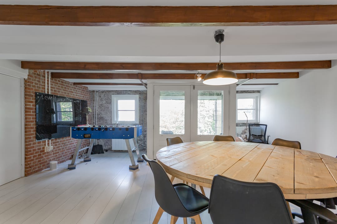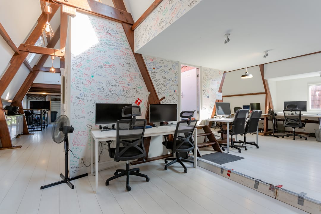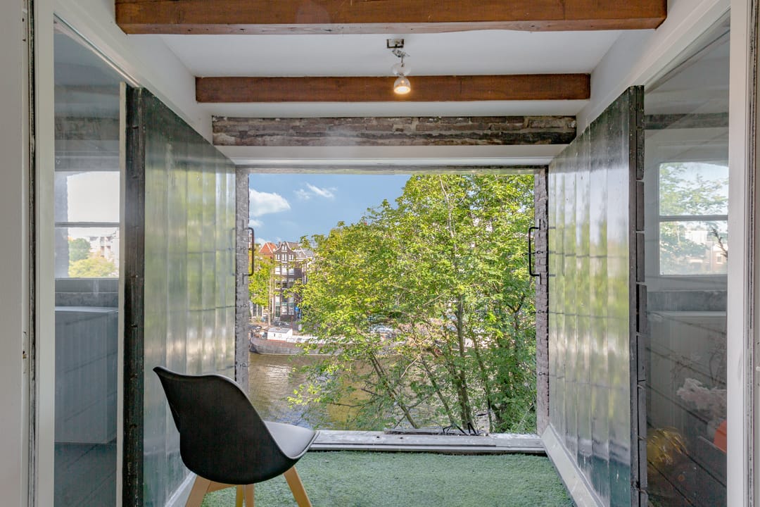Vanuit de kantoorruimte is er een fantastisch uitzicht over de gracht.
