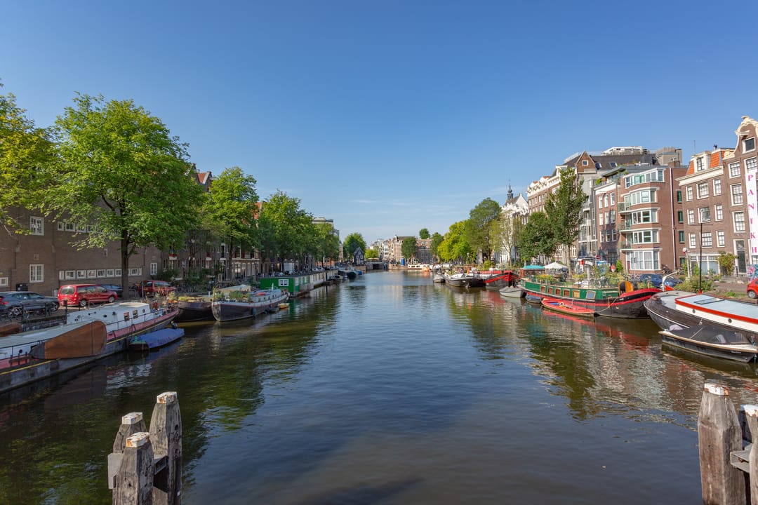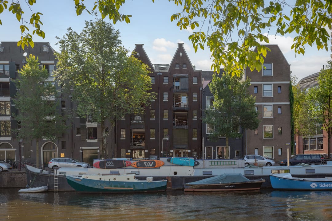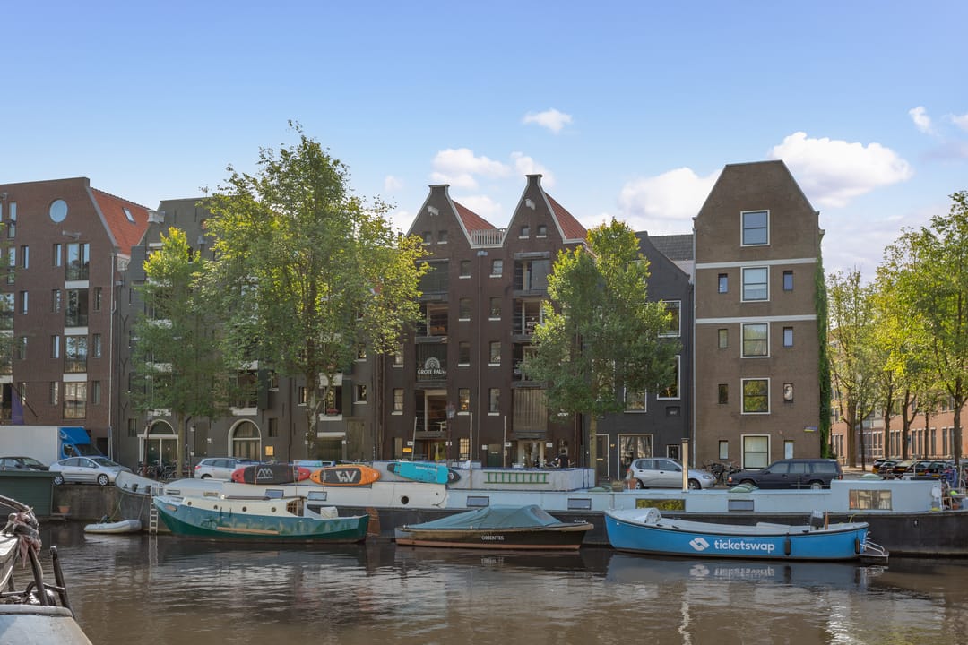 De pakhuizen zijn gelegen aan één van de mooiste en breedste grachten van Amsterdam.