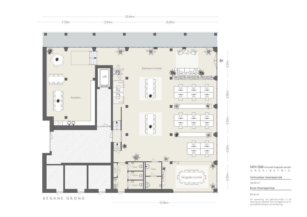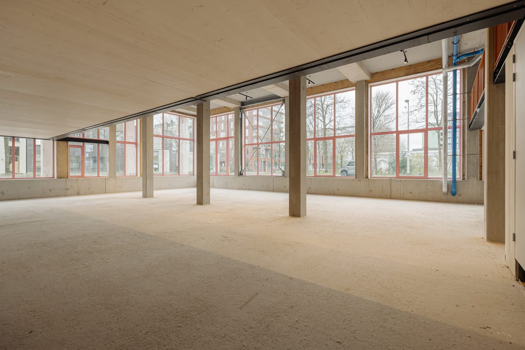 De commerciële plint, waar deze unit onderdeel van is, is ontworpen met hoge plafonds, royale vides en grote raampartijen die zorgen voor veel daglicht en een open, loftachtige sfeer. Het casco karakter biedt ruimte voor maatwerk, terwijl de basisarchitectuur al een sterke identiteit meegeeft. Materialisatie en detaillering sluiten aan bij een industriële, eigentijdse esthetiek met een duurzame inslag, kenmerkend voor de ontwikkeling en de wijk als geheel.