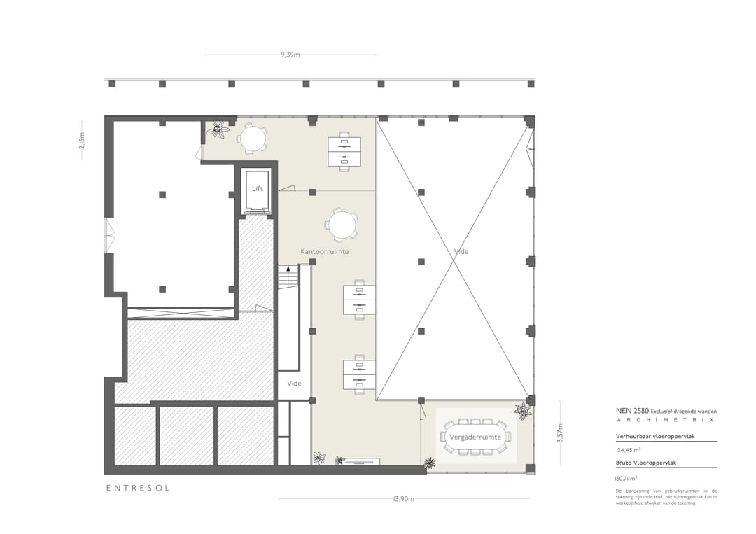 De ruimte strekt zich uit over twee niveaus en wordt gekenmerkt door hoekligging, een royale vide, een imposant hoog plafond en grote raampartijen die zorgen voor een overvloed aan daglicht en een open, loftachtige beleving. De commerciële ruimte wordt casco opgeleverd, waardoor de afbouw volledig kan worden afgestemd op de wensen en identiteit van de koper. De commerciële bestemming maakt een breed scala aan invullingen mogelijk, waaronder zakelijke functies, creatieve concepten en horeca.
