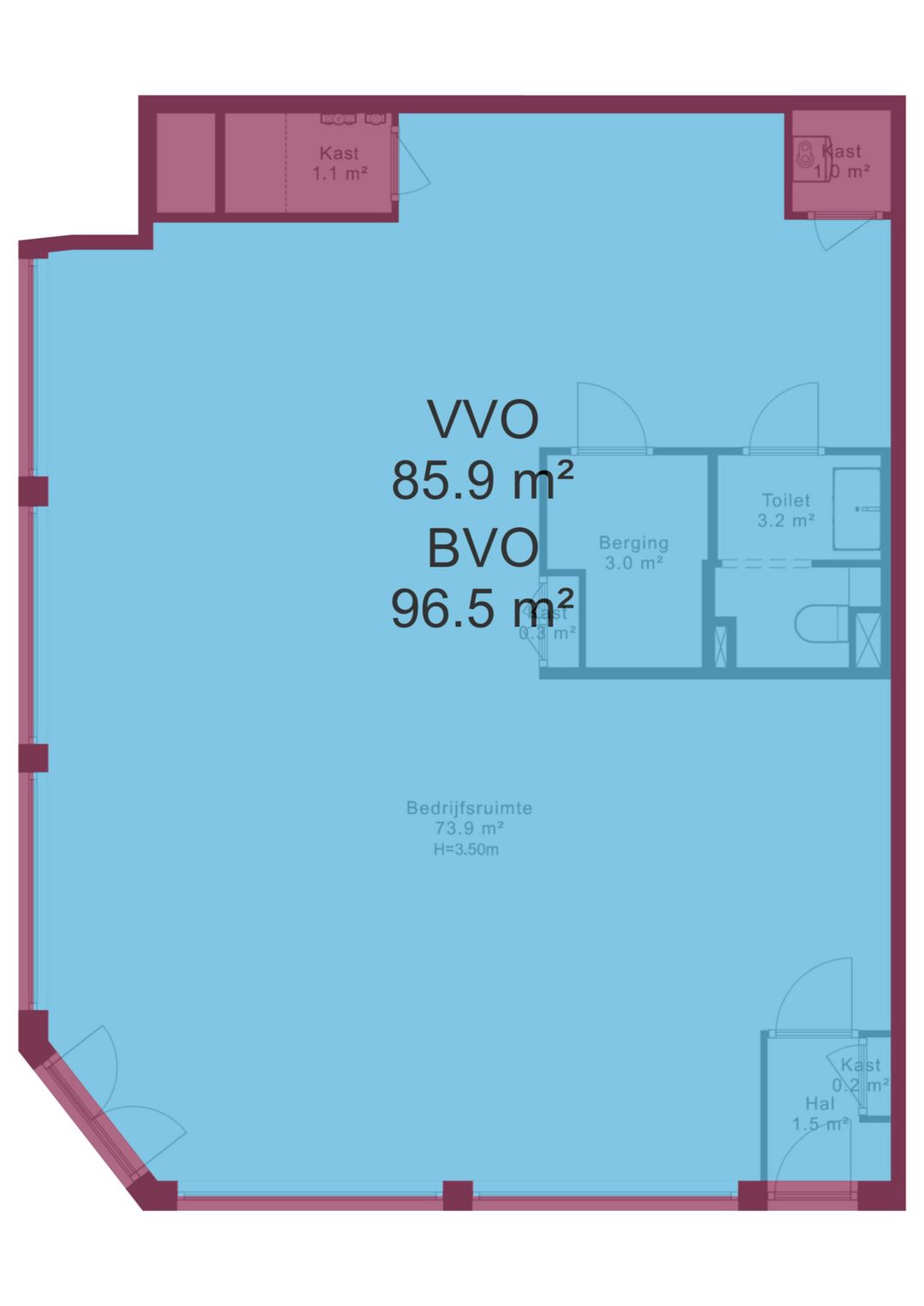 Laurierstraat – Hoekbedrijfsruimte met hoge plafonds (ca. 86 m² v.v.o.)
