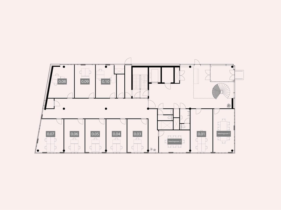 Je kantoor wordt opgeleverd zoals jij dat wilt – gemeubileerd of ongemeubileerd, altijd klaar voor gebruik. Met databekabeling, automatische verlichting en moderne sanitaire voorzieningen is alles aanwezig om jouw team optimaal te laten presteren.