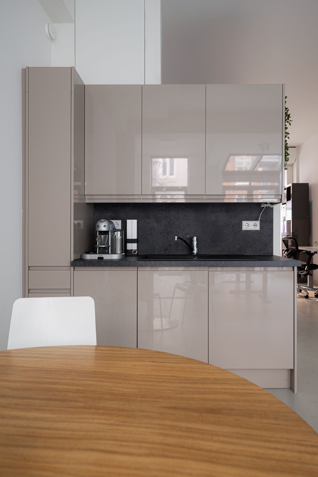 Dankzij het hoge plafond, de grote raampartijen en een dakraam aan de achterzijde beschikt de ruimte over een uitstekende daglichttoetreding en een aangenaam ruimtelijk gevoel. De kantoorruimte is zorgvuldig afgewerkt en direct gebruiksklaar. Een uniek kenmerk is de tuin, ideaal voor informele overleggen, ontspanning of een lunch in de buitenlucht.