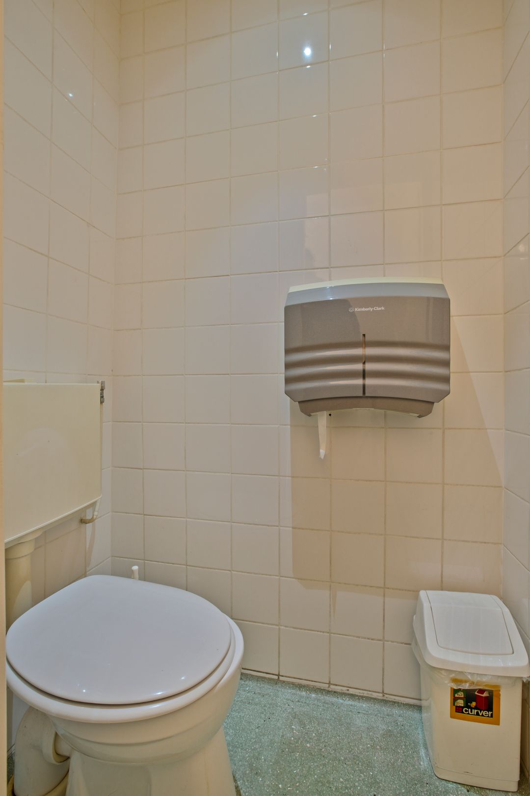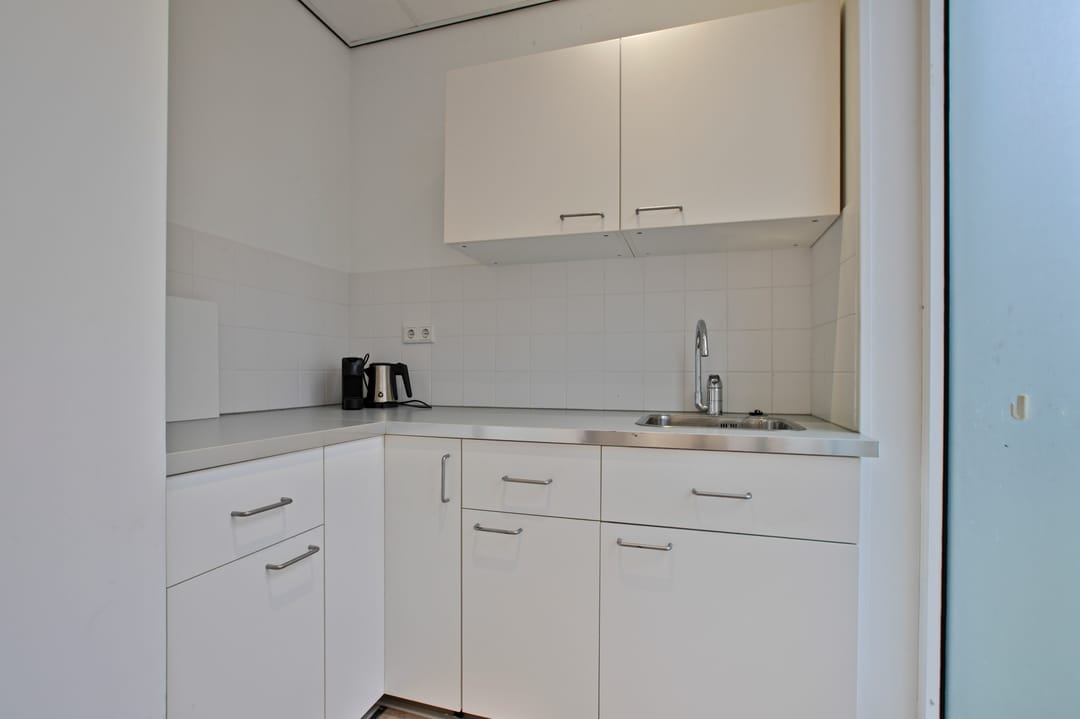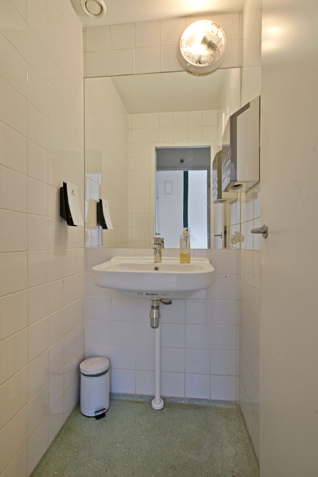Aan de achterzijde van het object bevinden zich de ondersteunende voorzieningen, waaronder een pantry/keuken en meerdere sanitaire voorzieningen.