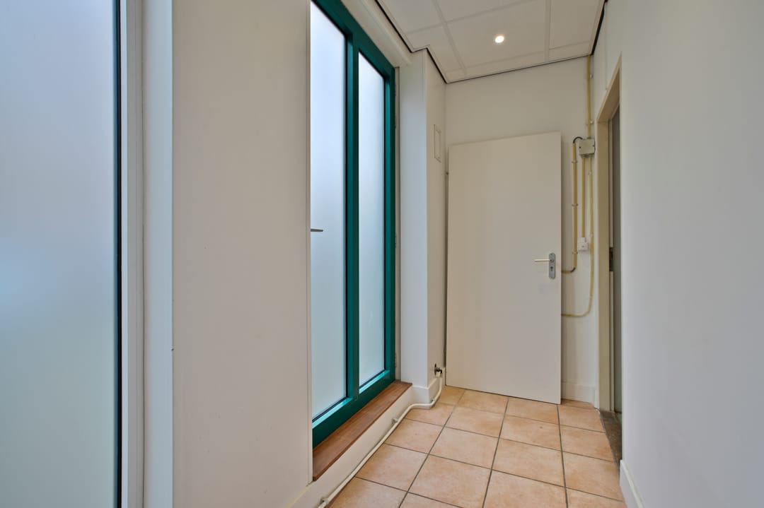 Dankzij de brede gevel en grote ramen is er veel daglichttoetreding, wat zorgt voor een prettige werkomgeving.