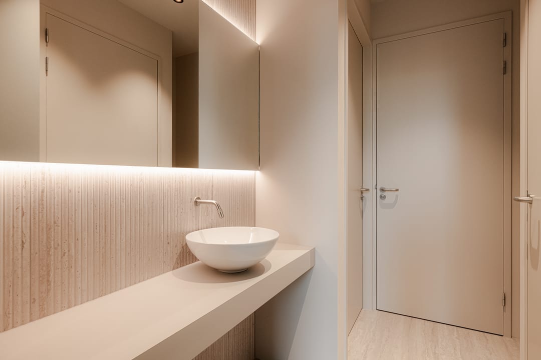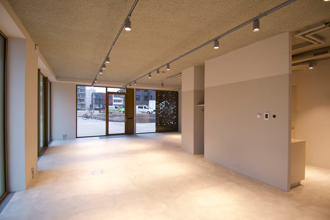 De ruimte is instapklaar en uitgevoerd met een gestorte, gevlinderde betonvloer voorzien van vloerverwarming. Daarnaast beschikt de ruimte over vloerpotten met elektra- en data-aansluitingen, akoestisch spuitwerk op het plafond, lichtlijnen met LED-verlichting en een basisalarmsysteem. Tevens is er in de kelder een royale bergingsruimte aanwezig, evenals een afgesloten fietsenstalling, welke bereikbaar is per lift of via hellingbaan en trap.