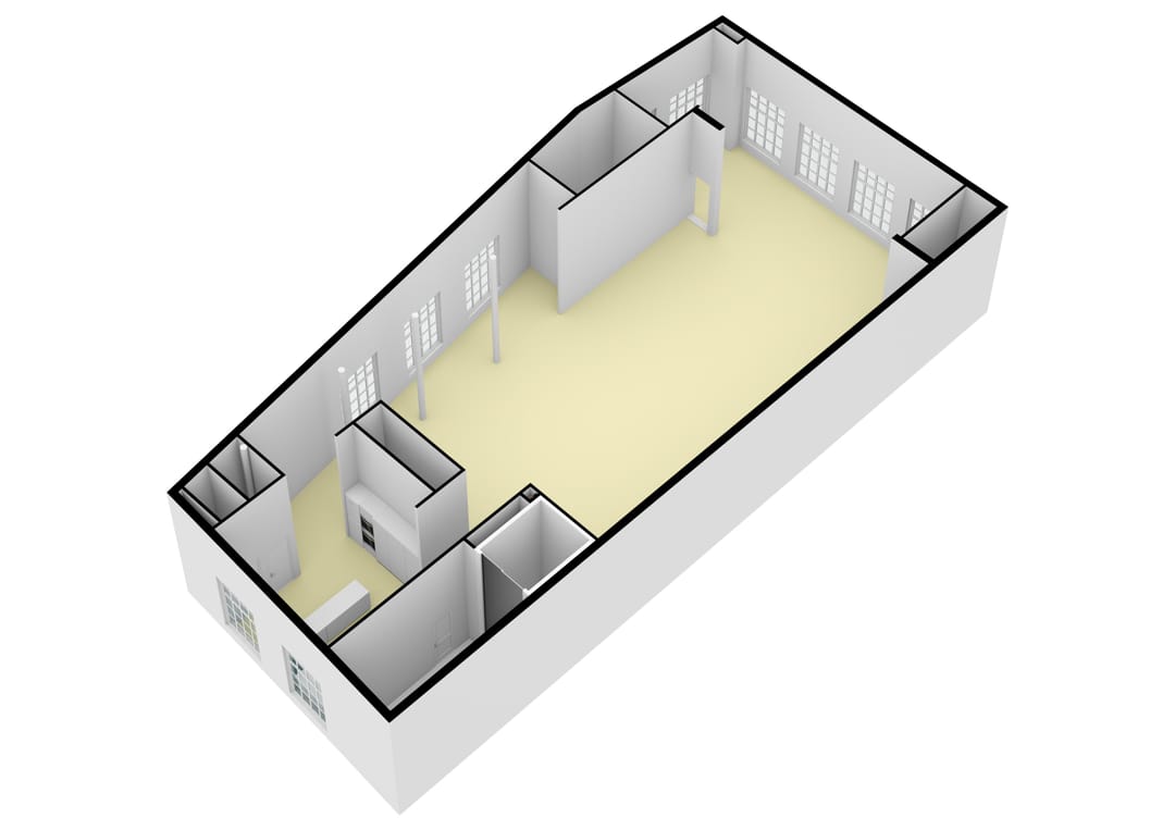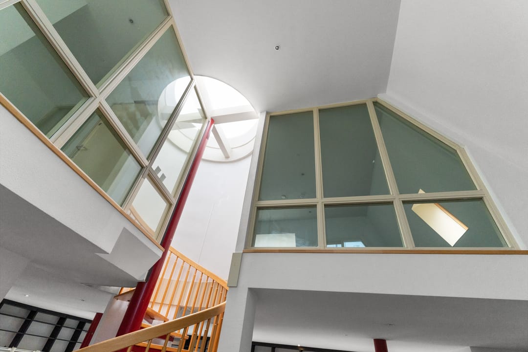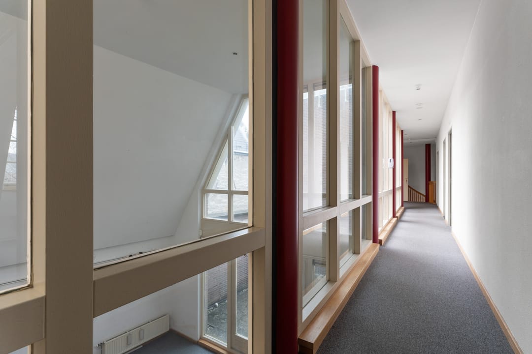 Rondom het gehele object zijn ramen waardoor er veel licht binnen komt.