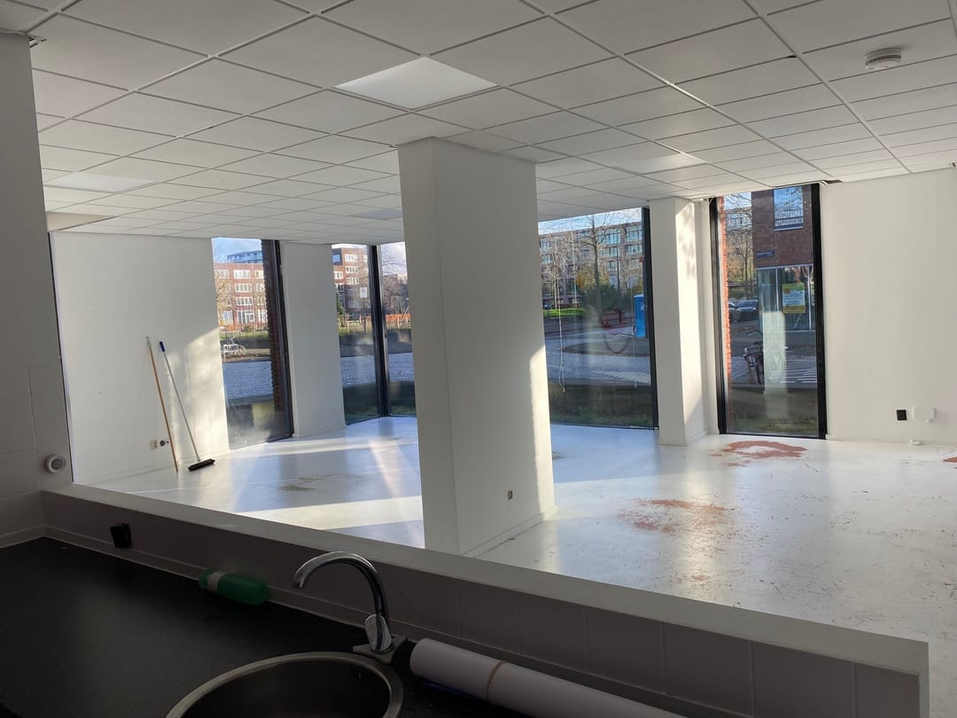 Deze grote, open ruimte is voorzien van een uitgebreide pantry/keuken en basis elektra- en verwarmingsinstallatie. Tevens is er een sanitair groep aanwezig met 3 toiletten. In de servicekosten zijn abonnementen opgenomen voor het herstellen van glasschade, ontstoppen van leidingen en verwijderen van graffiti.