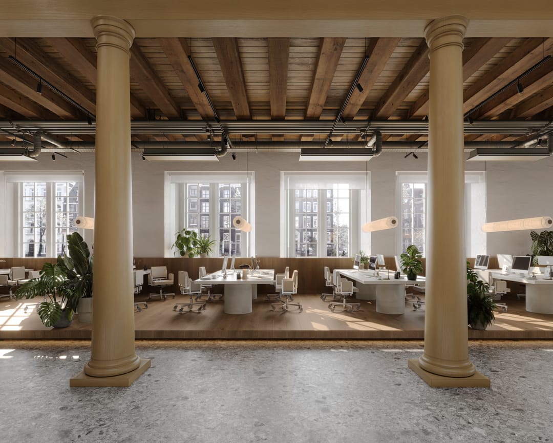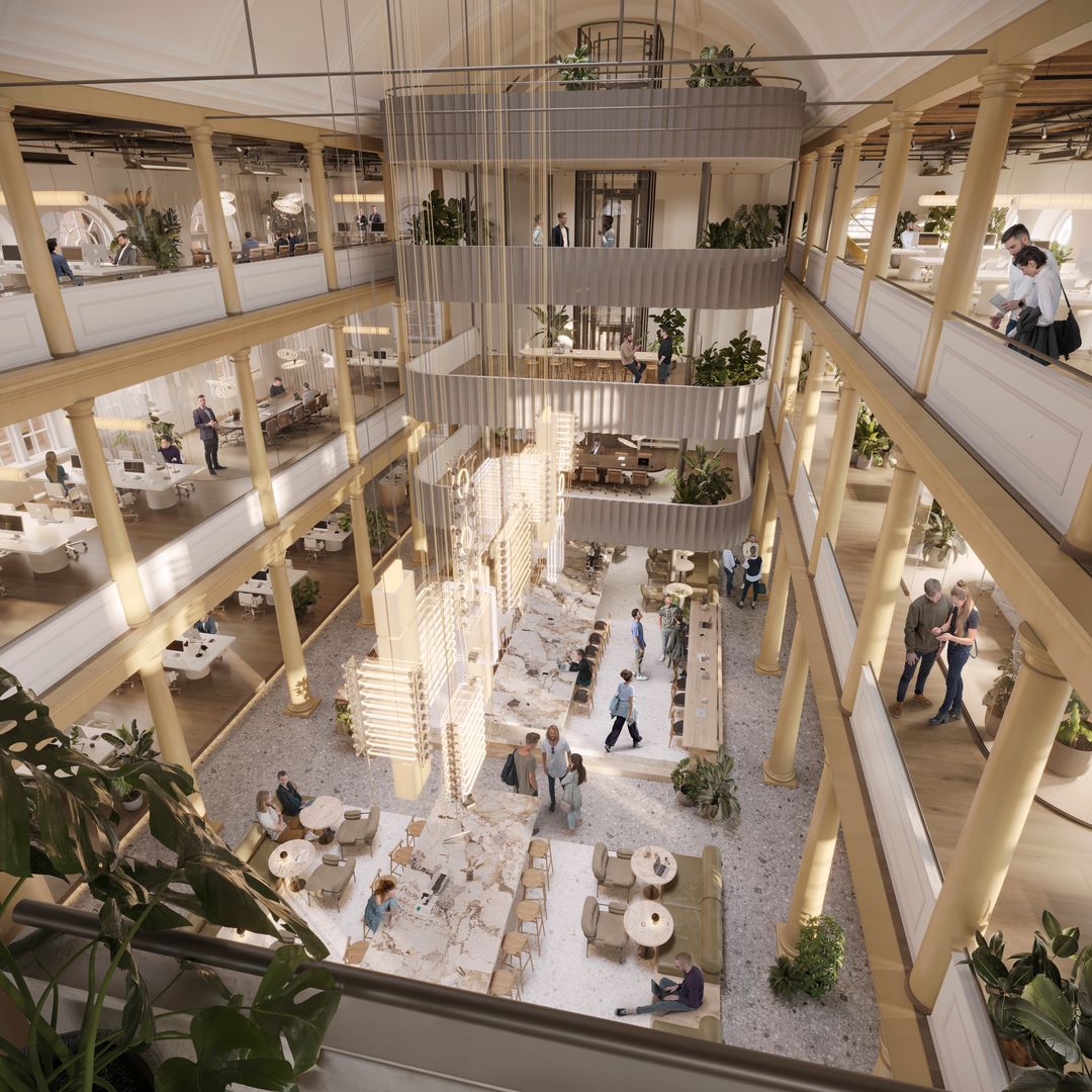 Venue beschikt over ca. 2.799 m² v.v.o. verdeeld over meerdere verdiepingen, waaronder een multifunctionele begane grond, mezzanine en drie kantoorverdiepingen die uitkijken op het atrium voorzien van een glazen dak en veel daglicht toetreding. Tijdens de renovatie is veel aandacht geweest voor het monumentale karakter van het gebouw: de originele houten balken, klassieke geveldetails en hoogwaardige afwerking die behoren tot Venue zijn behouden gebleven en in ere hersteld. Dit resulteert in een iconisch en uniek kantoor dat de Amsterdamse historie van de omgeving en het gebouw combineert met hedendaagse kwaliteit.