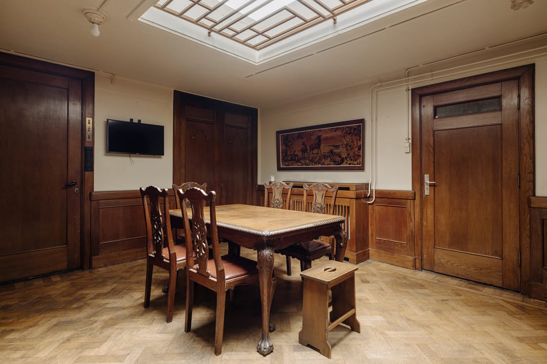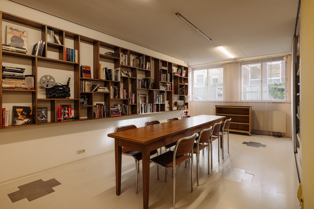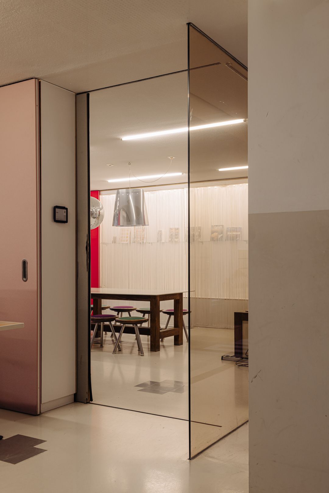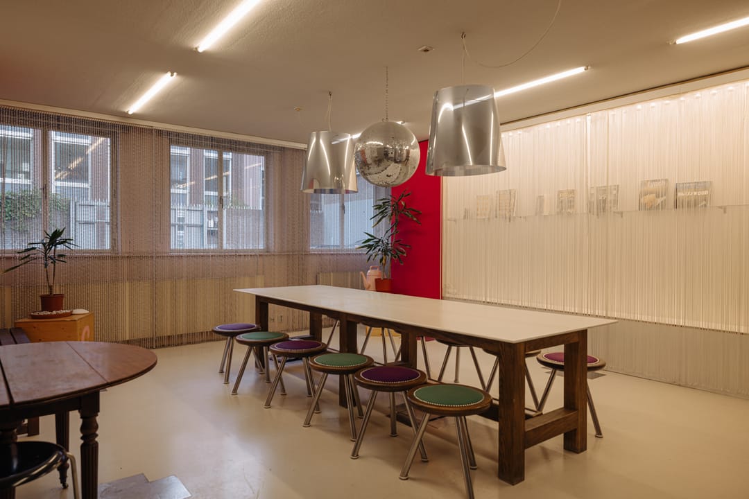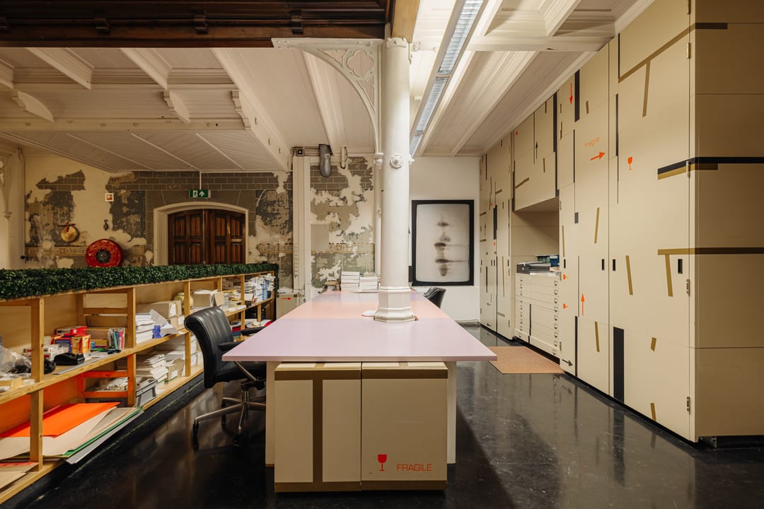 Aan de zijkant van de kapel ligt de voormalige hostiebakkerij, die begin jaren 2000 bij het complex is getrokken. Waar ooit honderdduizenden hosties per week werden gebakken, bevinden zich nu studio’s en werkruimtes. De lange ruimte met betonnen vloer en hoge ramen heeft een industriële helderheid die contrasteert met de kapel zelf.