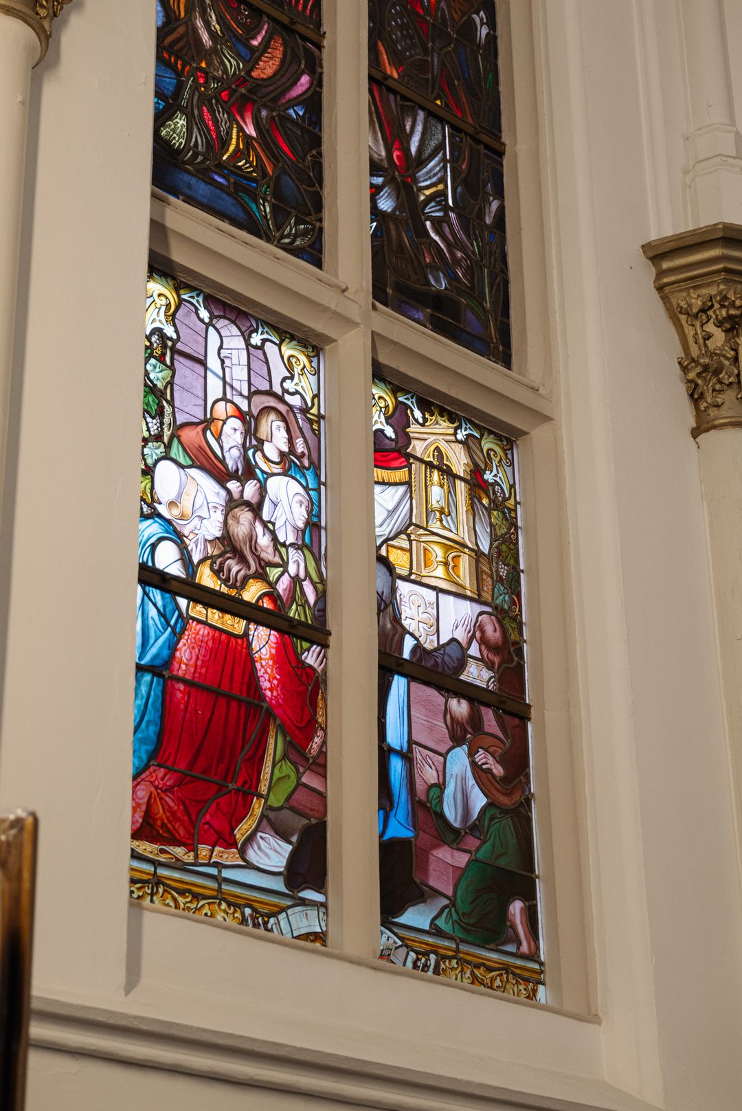 Naast het altaar ligt de sacristie, vroeger het domein van de priester, nu een vergaderruimte en een lunchruimte. De oorspronkelijke doorgang naar het altaar is dichtgezet, maar de gewelfde vorm en oude kastdeuren herinneren aan de vroegere functie.