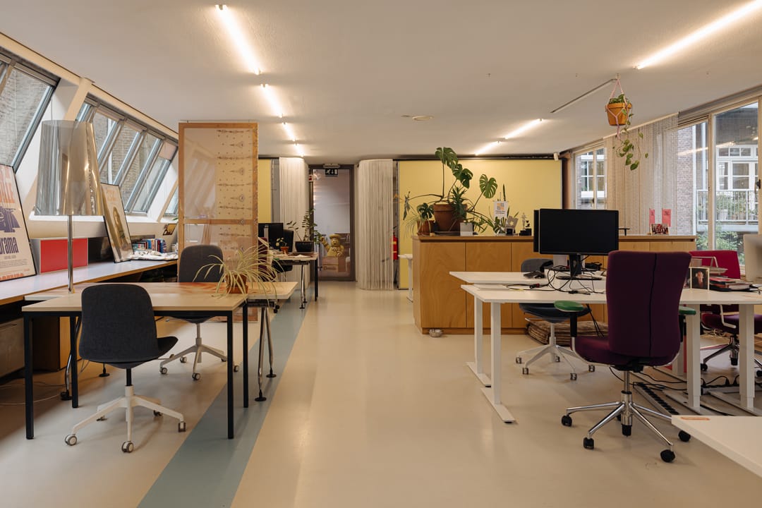 FAT ontwierp een houten fort midden in de ruimte, met werkplekken, trappen, picknicktafels, een duikplank, spiegelwanden en een bibliotheek als ruggengraat. Alles staat los, als een toneeldecor waarin mensen zich vrij kunnen bewegen. Het ontwerp werd vaak gepubliceerd en geldt tot op de dag van vandaag nog steeds als zeldzaam voorbeeld van postmodern, multidisciplinair interieurontwerp in Nederland.