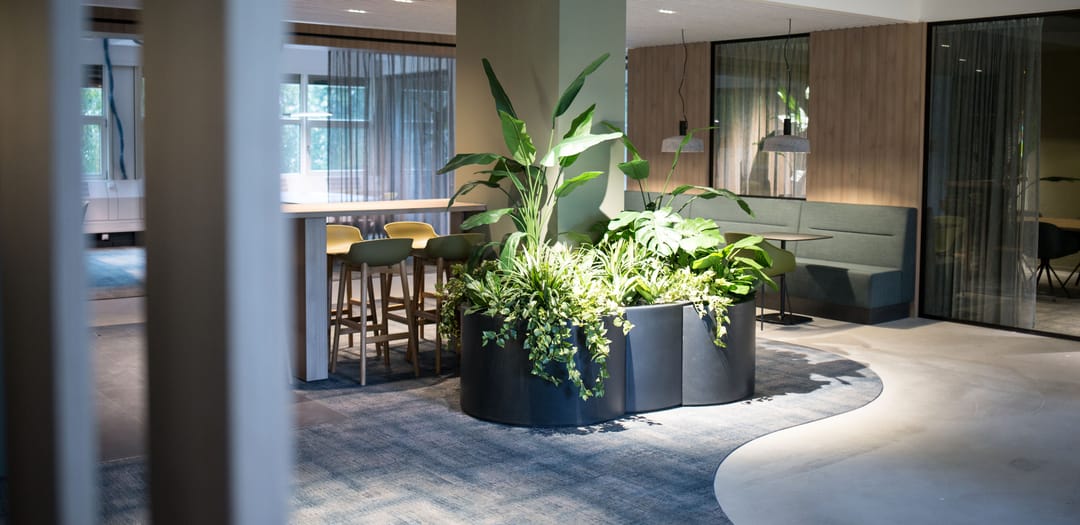 De getoonde foto’s in deze brochure zijn bedoeld als impressie. De foto’s zijn genomen bij andere huurders van vergelijkbare ruimten in de Edge Offices en geven een goede indruk hoe de ruimte ingericht en gebruikt kan worden. Onderhavige ruimte aan de Weerdestein 21 zal geheel leeg en ontruimd, dus zonder huurdersinrichtingspakket, worden opgeleverd.
