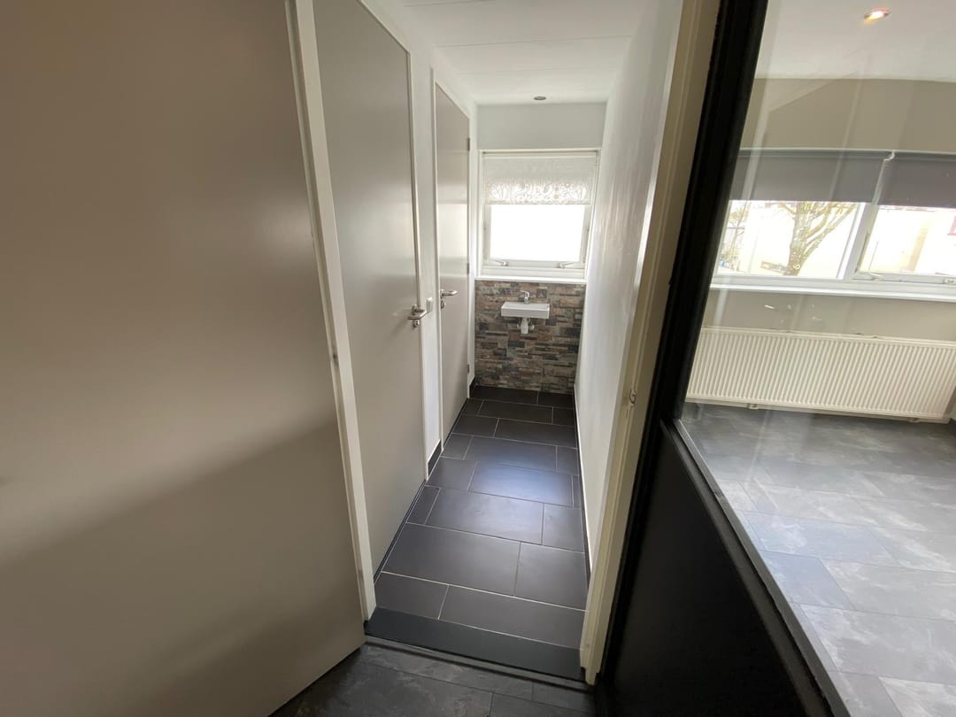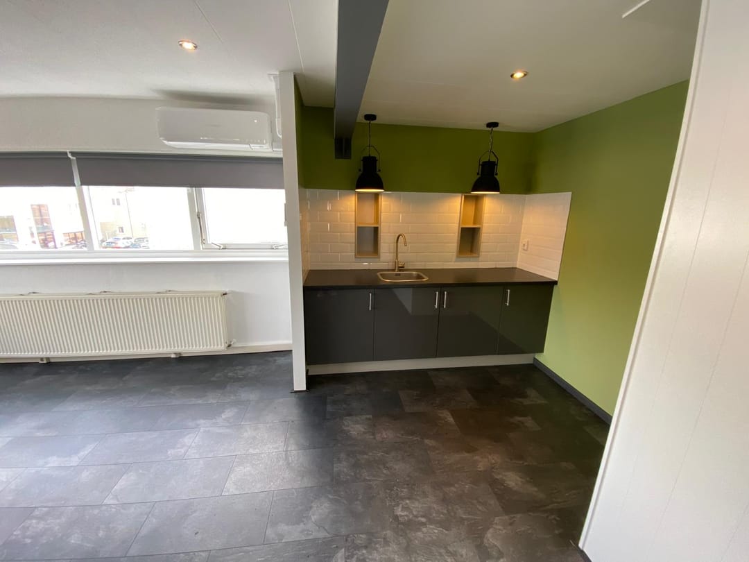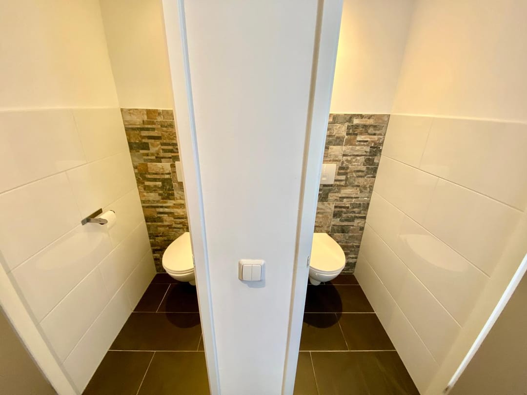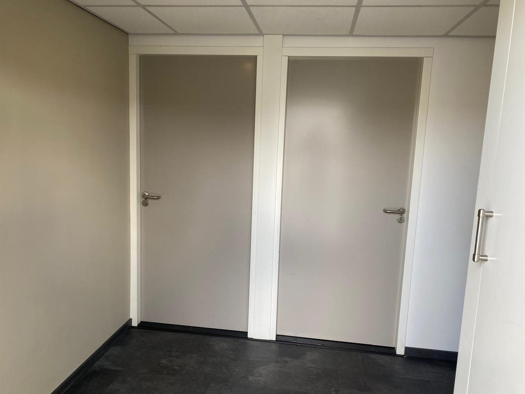 De ruimte is van alle gemakken voorzien, zoals een prachtige pantry/keuken met koelkast en veel kastruimte, een gescheiden dames- en herentoilet en een comfortabele werkomgeving dankzij airco en nette vloerafwerking.