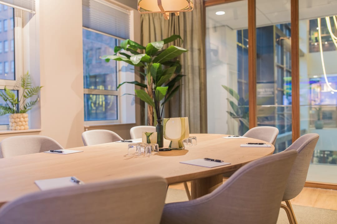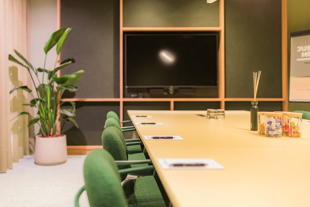 - Vergaderen — 6 professionele vergaderruimtes en 8 business spots, compleet uitgerust met flip-over, notitieblokjes en tv-scherm;