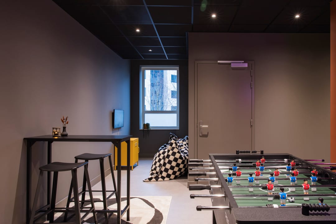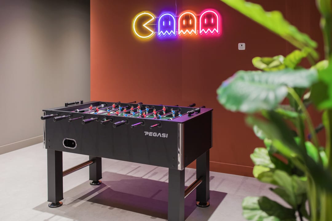 - Play area — ontspanningsruimte met een tafelvoetbaltafel en een Ninto Switch voor een welverdiende pauze;