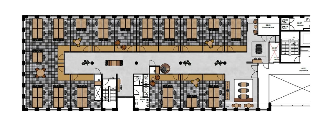 Optioneel bij te huren: werkplekken vanaf € 50,00 per maand en parkeerplaatsen in de ondergrondse garage voor € 200,00 per maand per parkeerplaats.