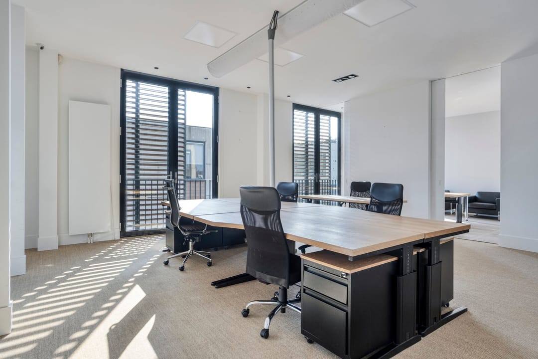 - Ruime open werkruimte bij de entree met meerdere werkplekken