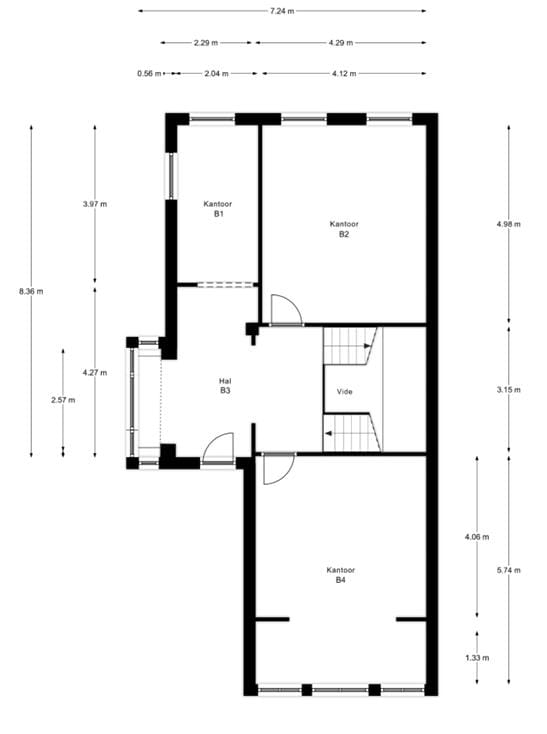 De vermelde oppervlakten van de eerste drie verdiepingen zijn conform de NEN 2580 rapporten vastgesteld. De oppervlakten van de tweede en derde verdieping zijn daarentegen niet volgens NEN 2580 opgemeten.