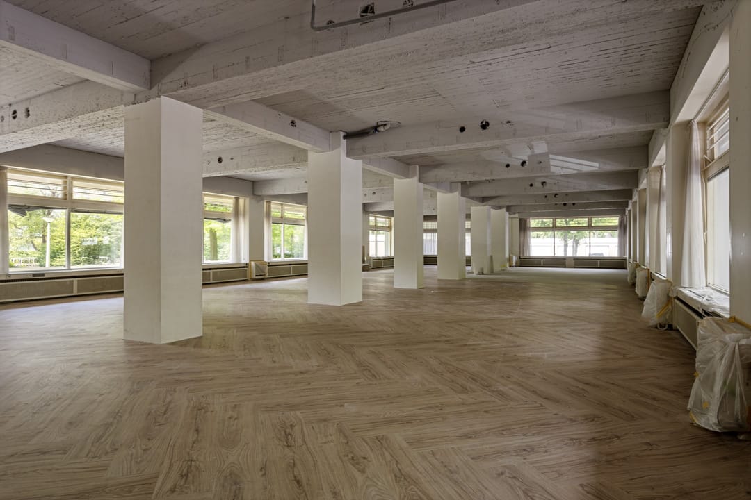 Totaal circa 235 m² op de begane grond aan de achterzijde van het gebouw.