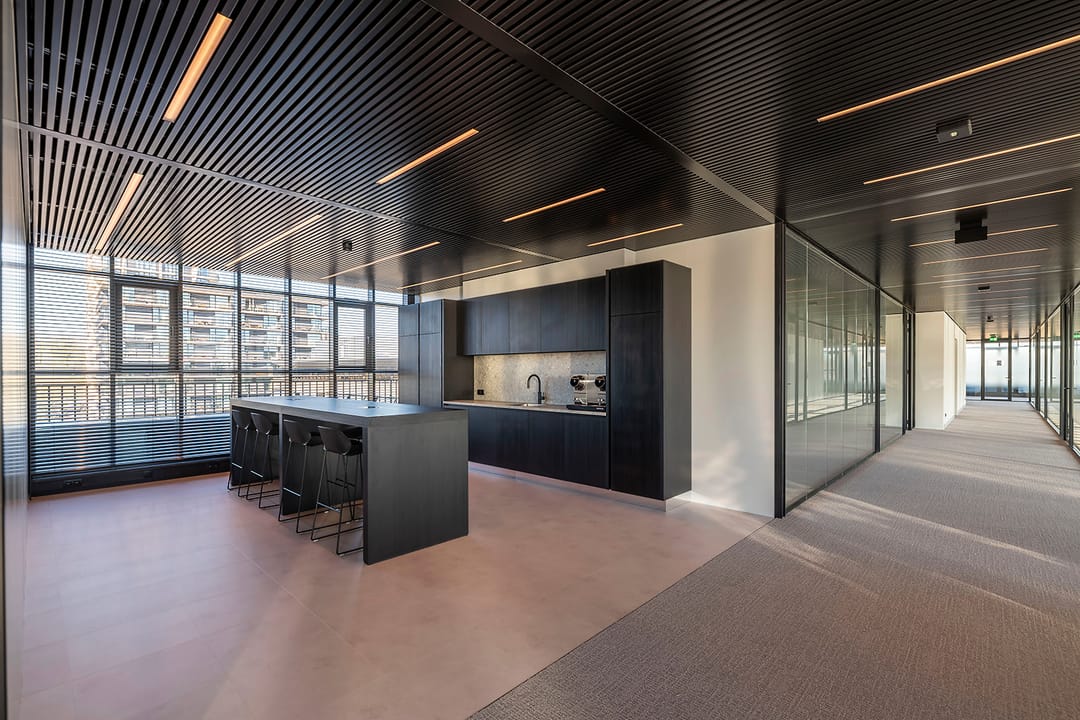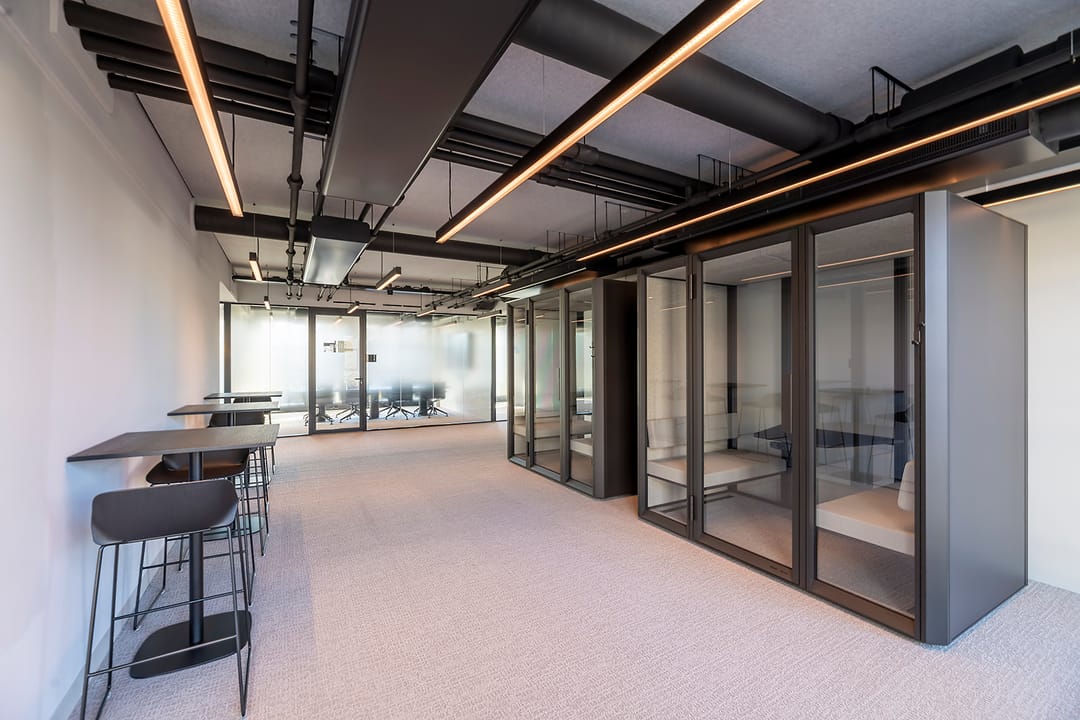 Voorzien van gemeenschappelijke vergaderruimte (met AV apparatuur) en 2 phone boots, keuken voorzien van luxe koffiemachine en diverse informele zitjes.