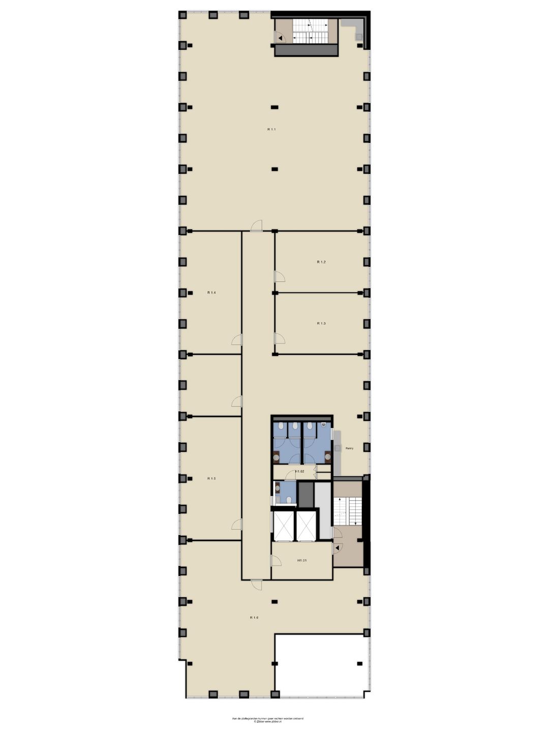 - Airconditioning, mechanische ventilatie, topkoeling, inbouwarmaturen, liften, te openen ramen, kabelgoten, systeemplafond, toilet, pantry, verwarming en kamerindeling