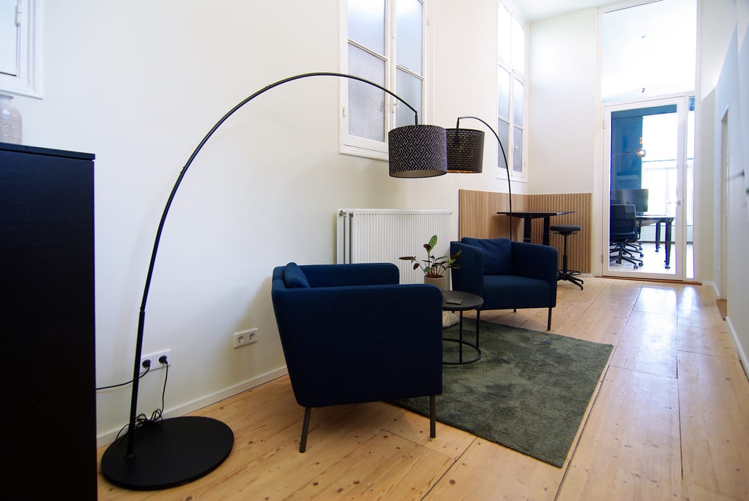 - Meubilair (optioneel): standaard tafel (150x75 cm) € 5,- per maand excl. BTW; zwarte bureaustoel € 10,- per maand excl. BTW