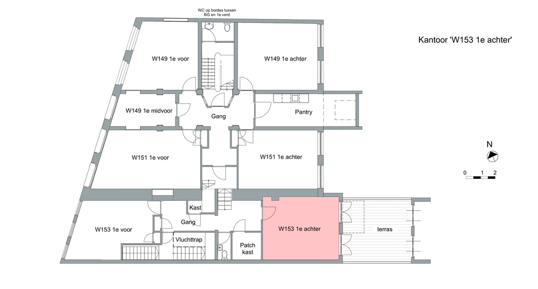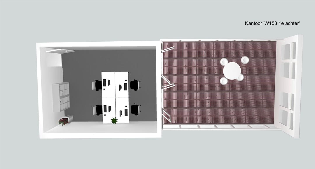 Het kantoor biedt comfortabel plaats aan een team van circa vijf tot zes personen. In het gebouw is een gedeelde vergaderruimte aanwezig die per uur kan worden gereserveerd en op dezelfde verdieping bevindt zich een gezamenlijke pantry. Het pand trekt een creatief publiek aan, zoals startups, zelfstandigen en kleine studio’s, wat zorgt voor een inspirerende en dynamische werkomgeving.