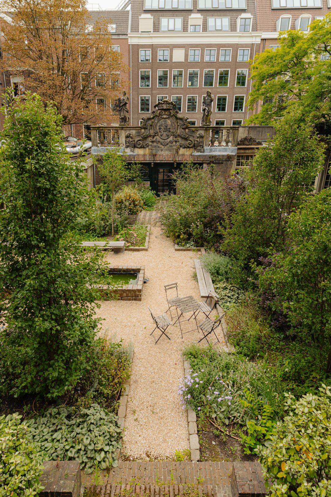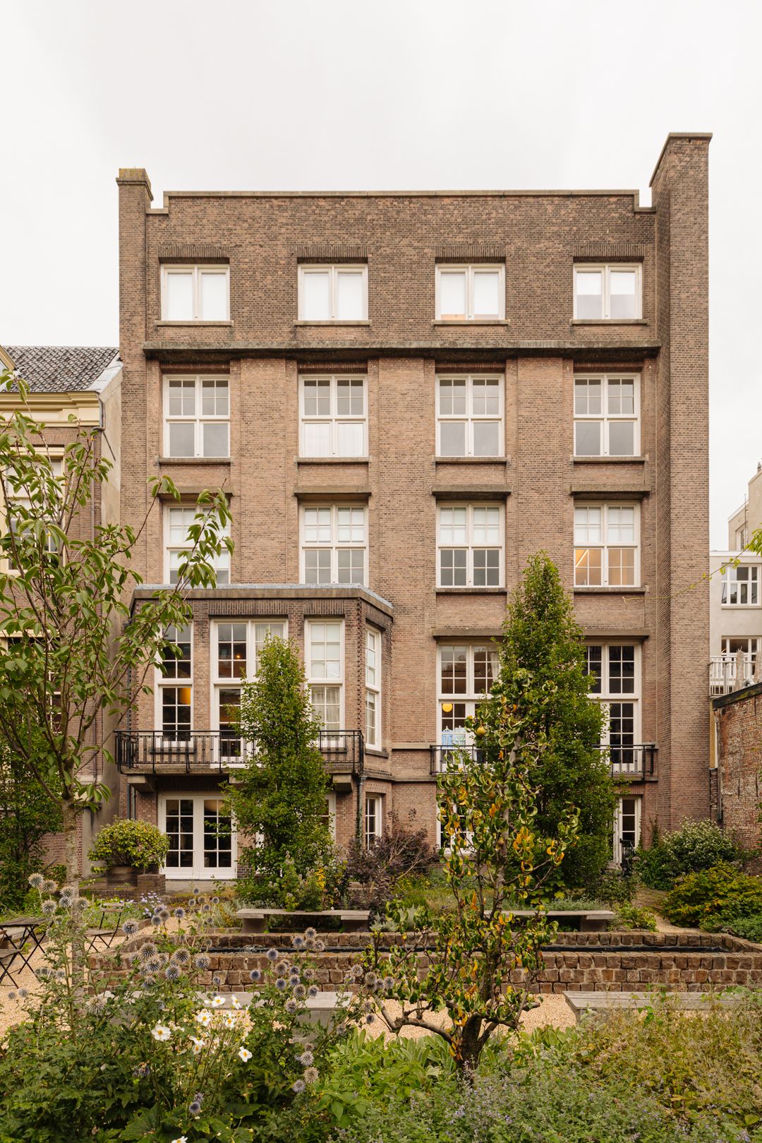 Achter het monumentale pand bevindt zich een prachtige zeer ruime tuin, compleet met een sfeervol tuinhuis en een elegante waterfontein. Deze tuin, op het westen, biedt een oase van rust en schoonheid te midden van de drukte van de stad. Het tuinhuis is een charmante toevoeging aan de buitenruimte. Met zijn traditionele architectuur en rustieke sfeer biedt het tuinhuis een warme en uitnodigende omgeving om te vergaderen.