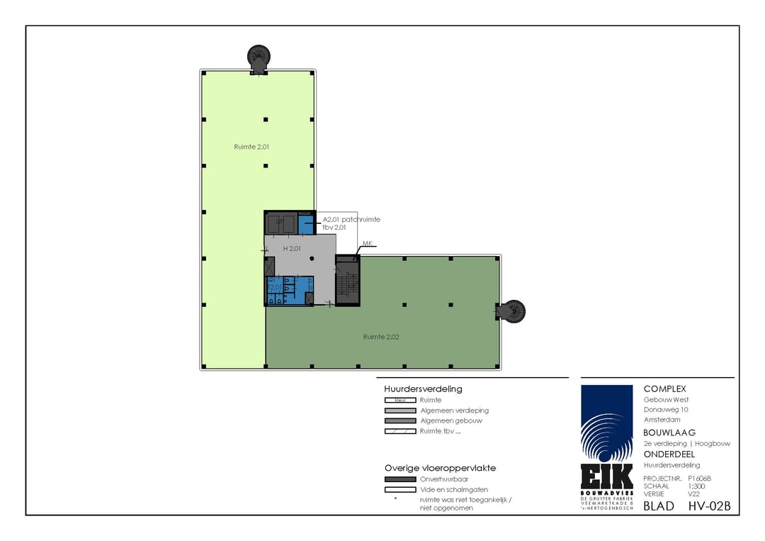 De kantoorruimte (unit R.2.01) is 411m² VVO gelegen op de 2e etage