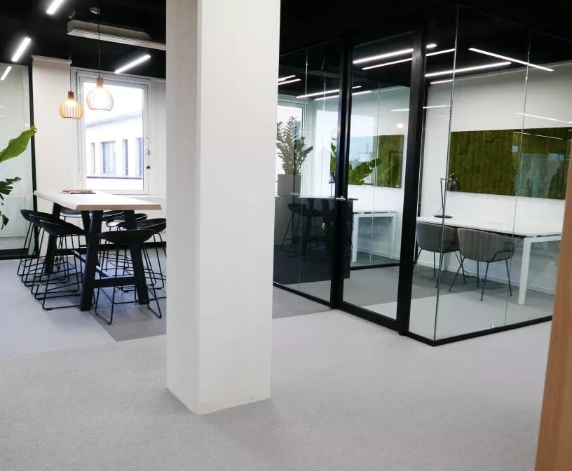 - Glazen scheidingswanden;