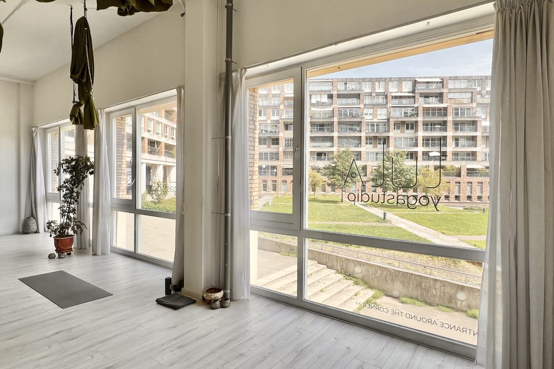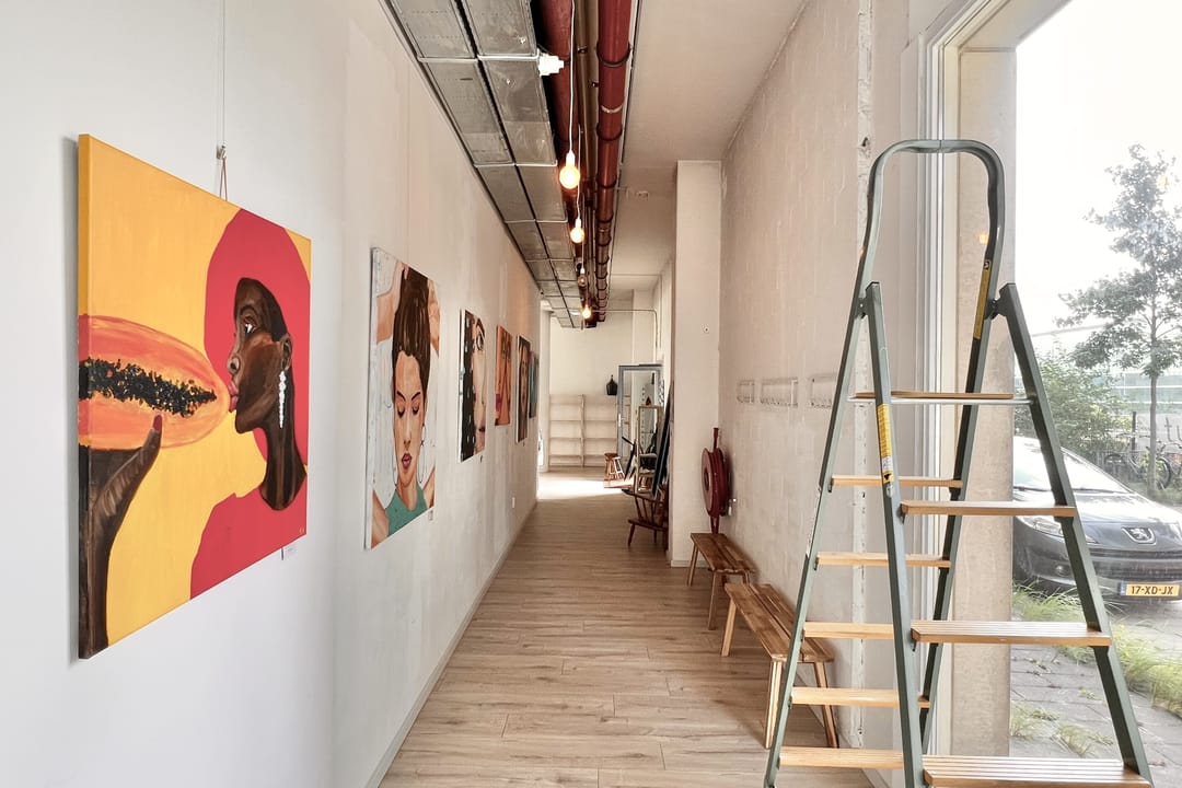 De ruimte is gelegen op de begane grond en beschikt over een eigen entree in een rustige zijsteeg. Het hoge plafond en de grote ramen zorgen voor een zeer ruimtelijk gevoel en bieden prachtig uitzicht over de Stadstuin Bos en Lommer. Dit resulteert in veel daglichttoetreding en een prettige werkomgeving. De indeling bestaat uit drie grote open ruimtes, wat de flexibiliteit biedt voor uiteenlopende invullingen.
