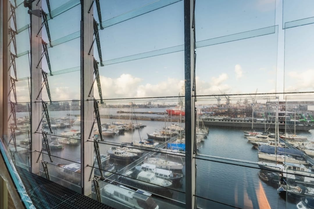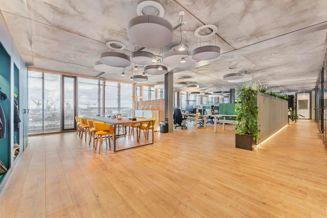In het Kraanspoor 36, gelegen in het levendige en creatieve NDSM-werfgebied in Amsterdam, is een unieke kantoorruimte beschikbaar. Dit opvallende gebouw beslaat drie verdiepingen en steekt over de kade uit met een prachtig uitzicht over het IJ.