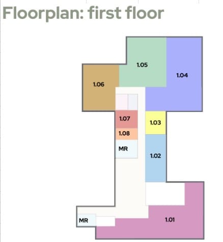 - Unit B2.06: 104 m² - 12 werkplekken, € 4.200 per maand: Eigen vergaderruimte