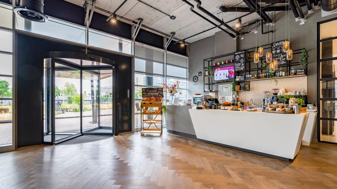 Huurders profiteren van de voordelen van een full servicekantoorconcept, waaronder een receptiedienst met barista en uitgebreide lunch- en cateringfaciliteiten, een sfeervolle stadstuin voor een ontspannen lunchpauze, laadpalen in de parkeergarage, drie liften en extra vergaderruimte op aanvraag.