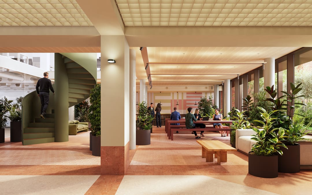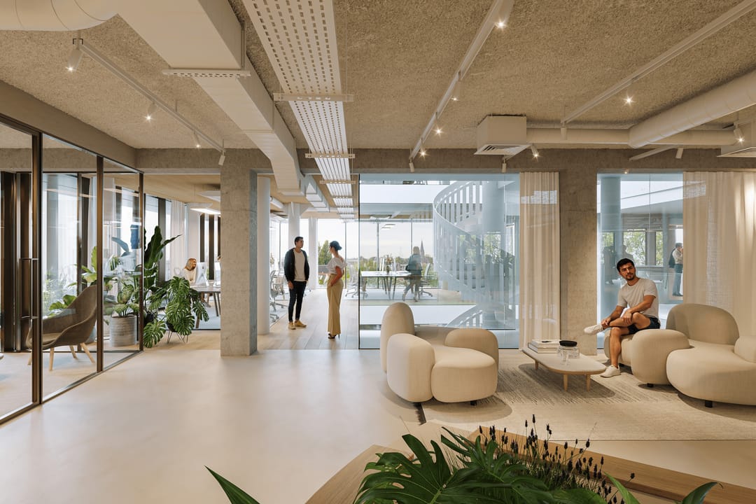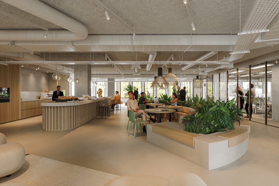 De entree en sociale ruimtes, ontworpen door Beyond Space, bieden een warm welkom met natuurlijke materialen, veel daglicht en groen. De kantoorvloeren van ca. 1.200 m² zijn flexibel in te delen en geschikt voor zowel open werkvloeren als besloten werkplekken.