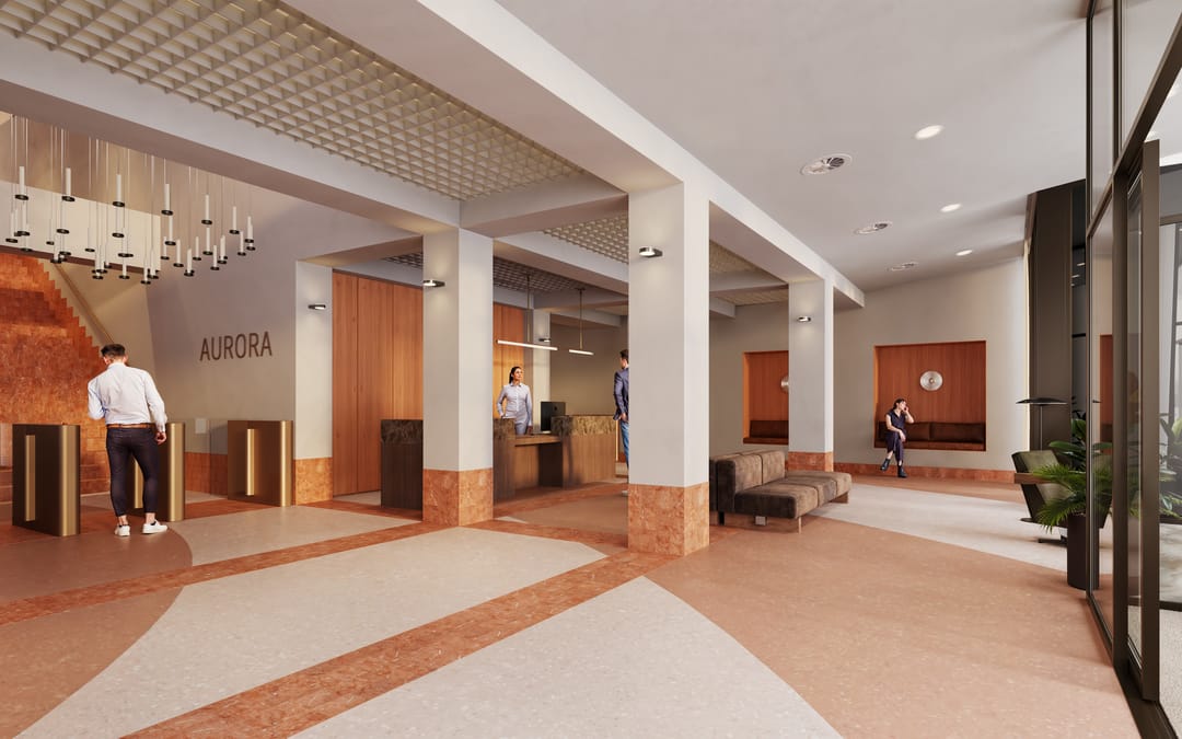 Onder leiding van KAAN Architecten en Being, wordt Aurora vernieuwd met respect voor haar rijke geschiedenis. De karakteristieke gevel blijft behouden, terwijl moderne toevoegingen, zoals een glazen atrium met een spiraalvormige trap en groene gevels zorgen voor een open, lichte en gezonde werkomgeving.