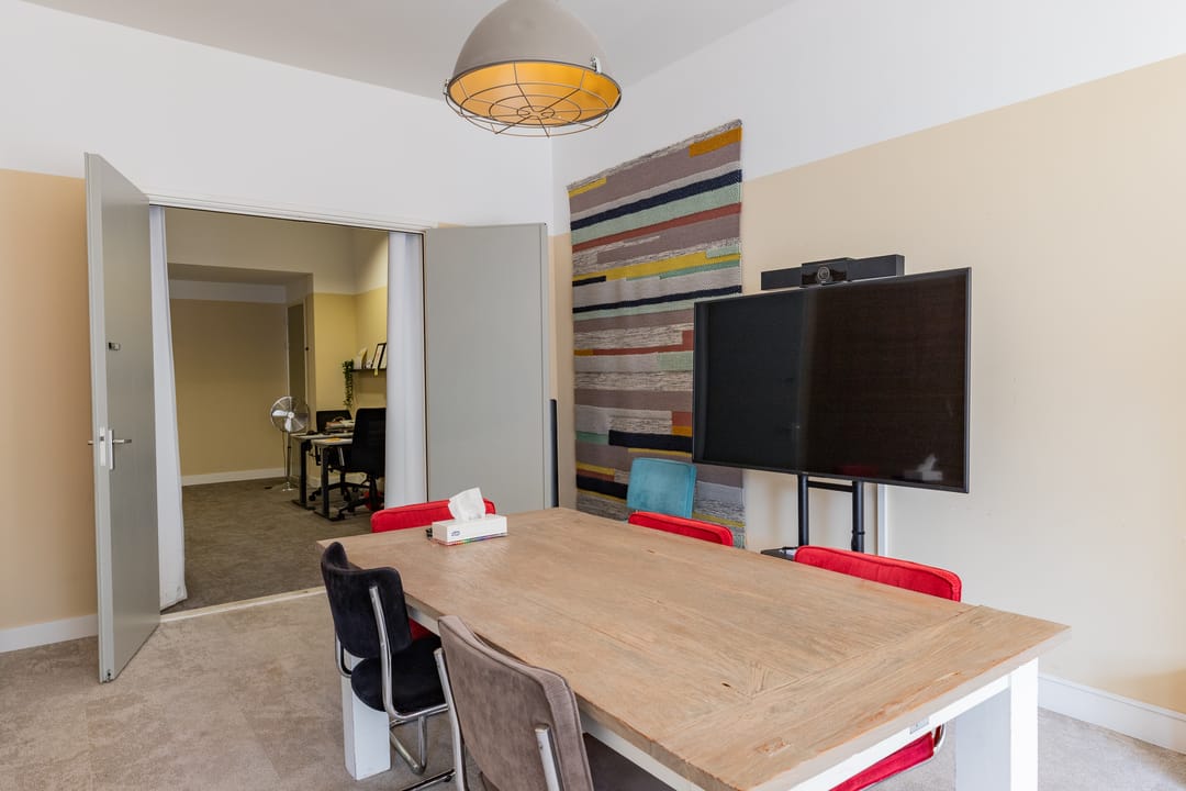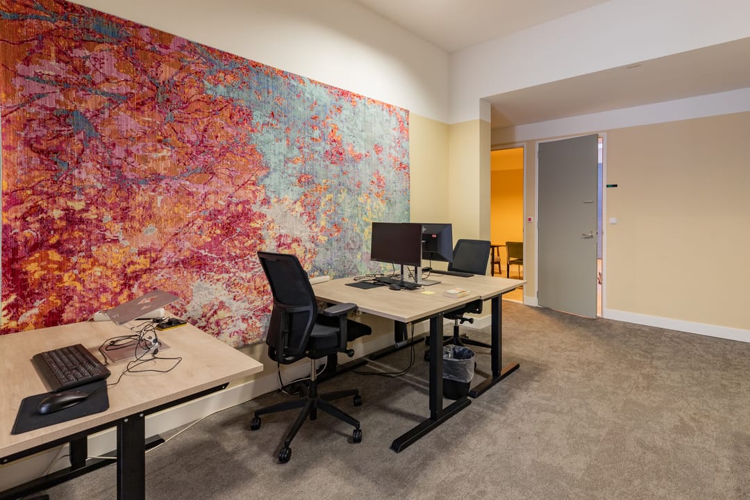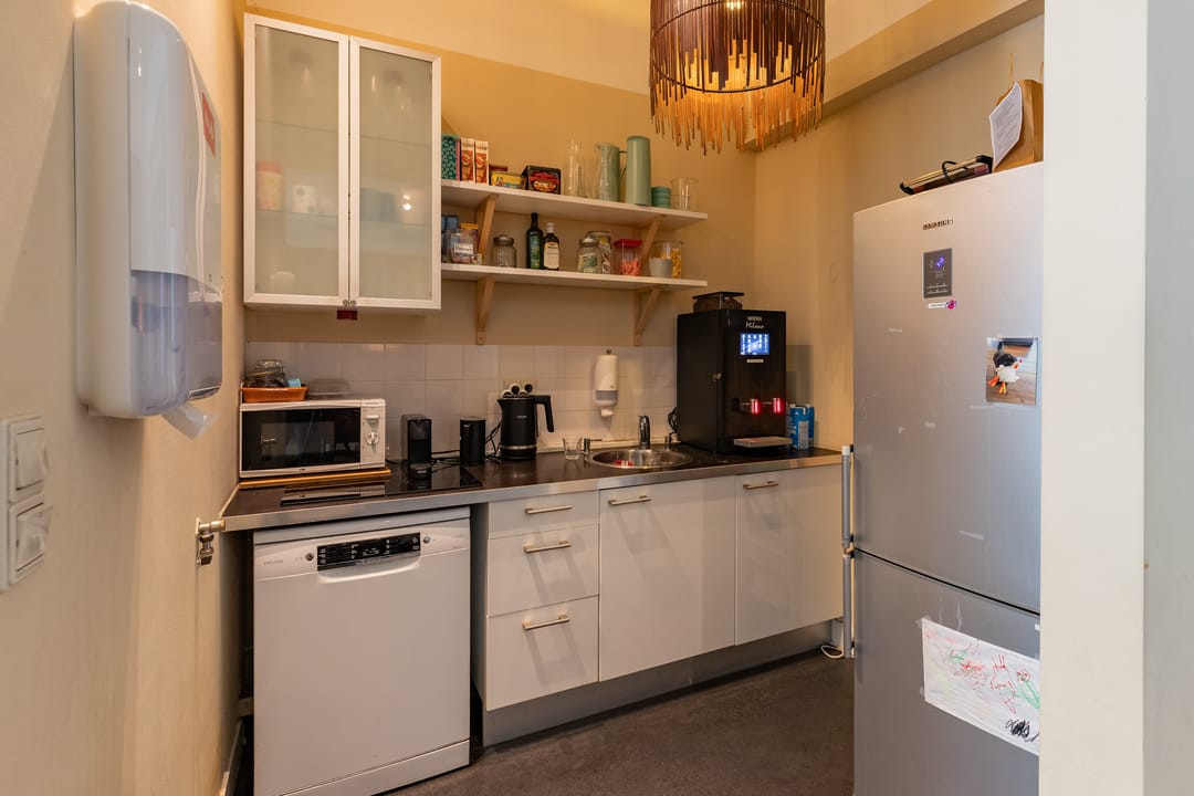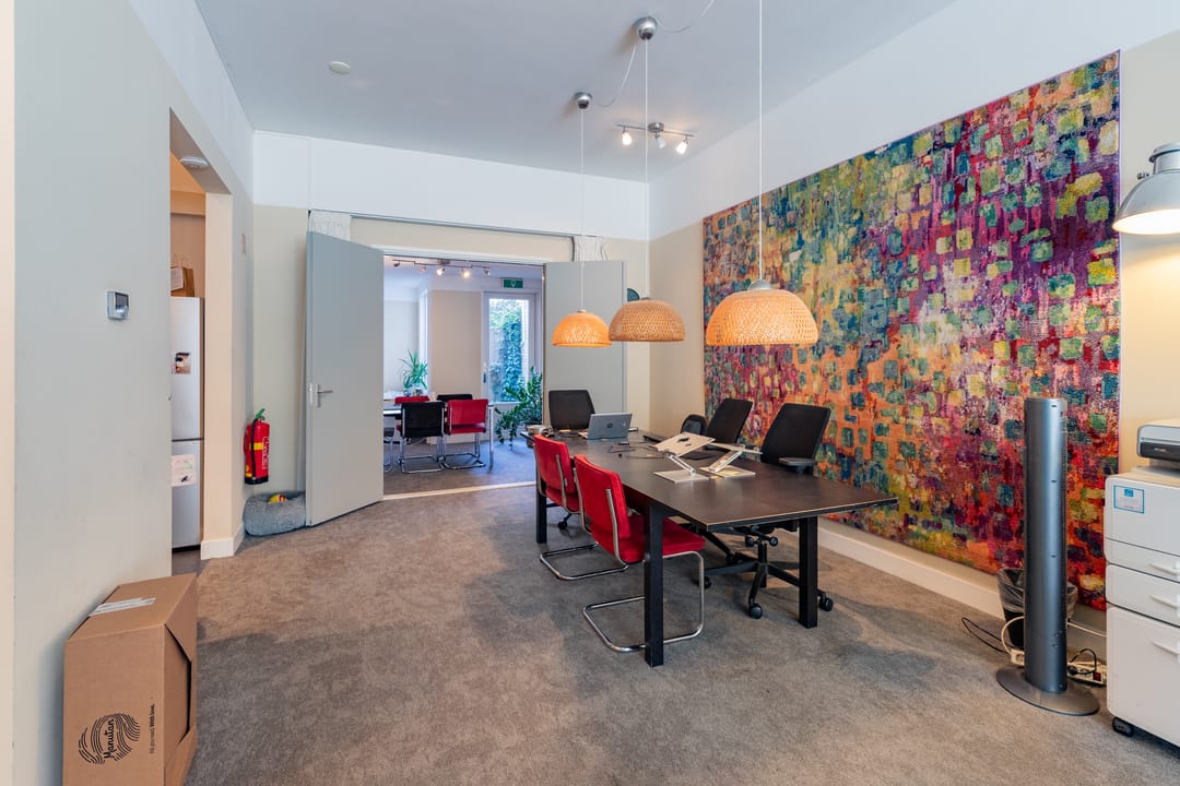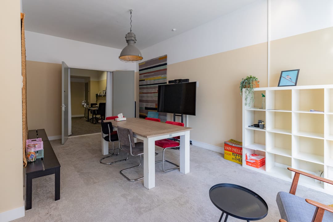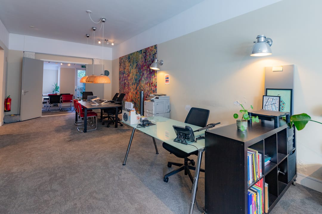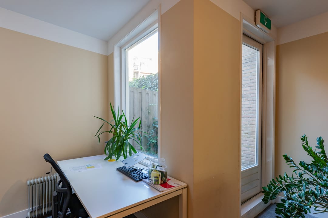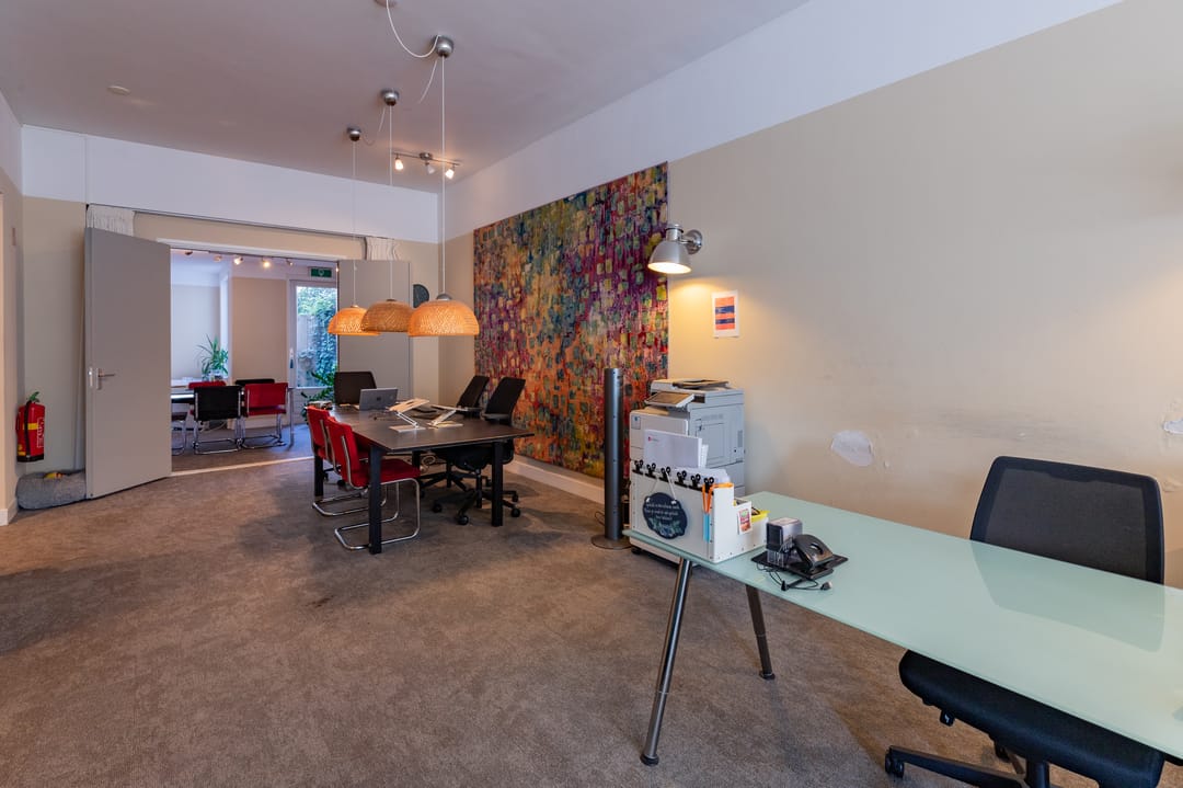 De grote ramen aan de straatkant zorgen voor veel daglicht en kijken uit op de levendige stad. Verder is de ruim 188 m² van dit kantoor is erg praktisch ingedeeld met twee grotere ruimtes aan de ramen en veel meeting- en belruimtes. Ook is er zelfs nog een kleine tuin :)