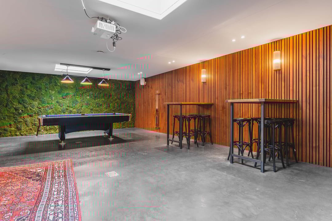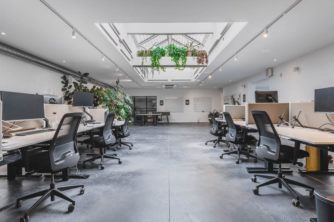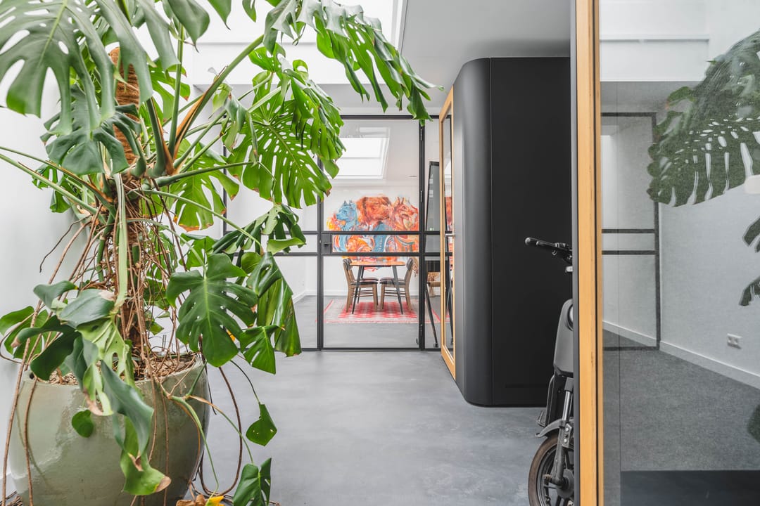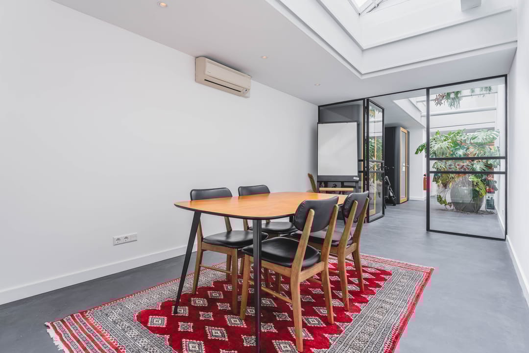 Het achterhuis bestaat uit een ruime open werkvloer die verschillende werkzones met elkaar verbindt. Daarnaast zijn er twee separate kantoorruimtes beschikbaar, te gebruiken als teamruimte of als afzonderlijk kantoor. Aanvullend beschikt het kantoor over een vergaderruimte, twee phonebooths en meerdere bergingen.
