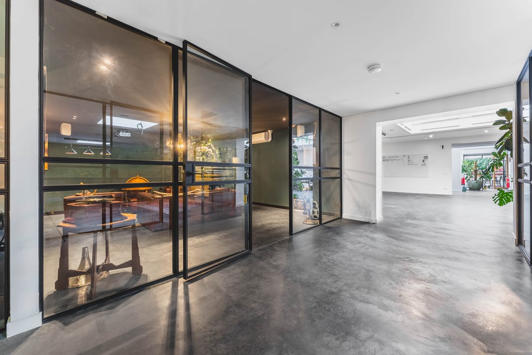 Het kantoor beschikt over een heldere en transparante indeling met diverse werk- en overlegruimtes. Originele bouwkundige elementen zoals draagbalken en hoge plafonds zijn zichtbaar behouden en vormen een karakteristieke basis voor de eigentijdse inrichting. Grote raampartijen aan de voorzijde en de royale dakramen in het achterhuis zorgen voor een uitzonderlijke hoeveelheid daglicht.