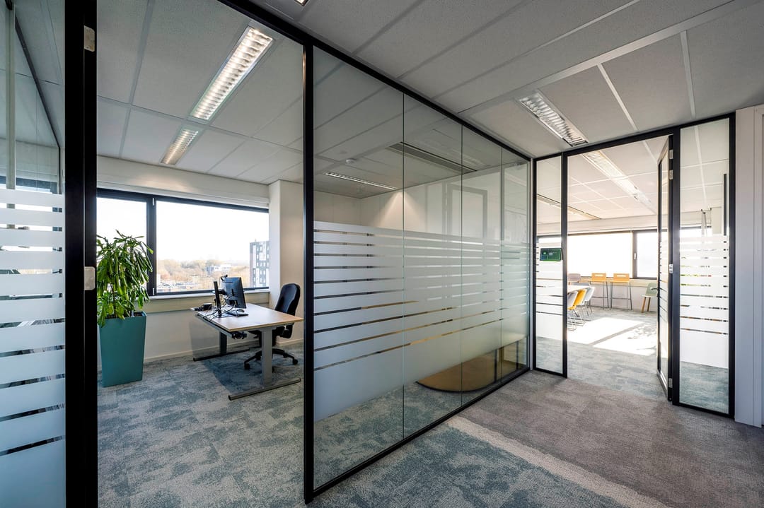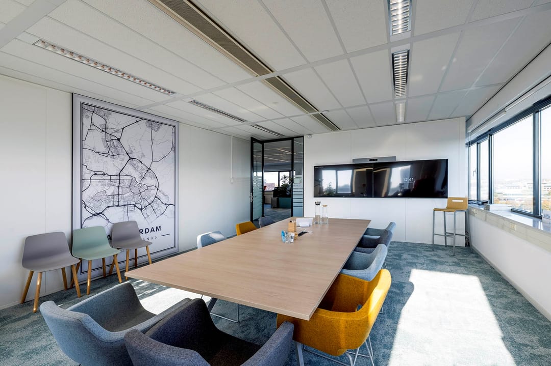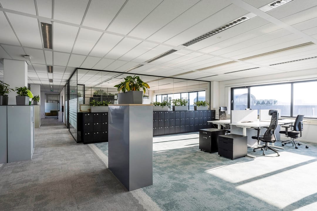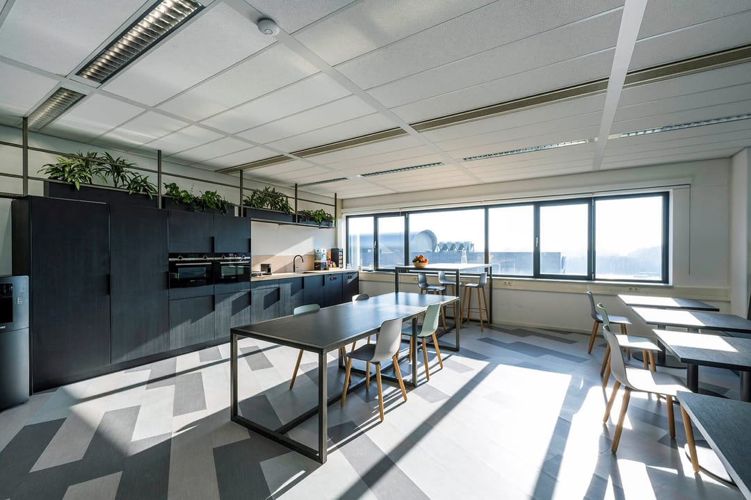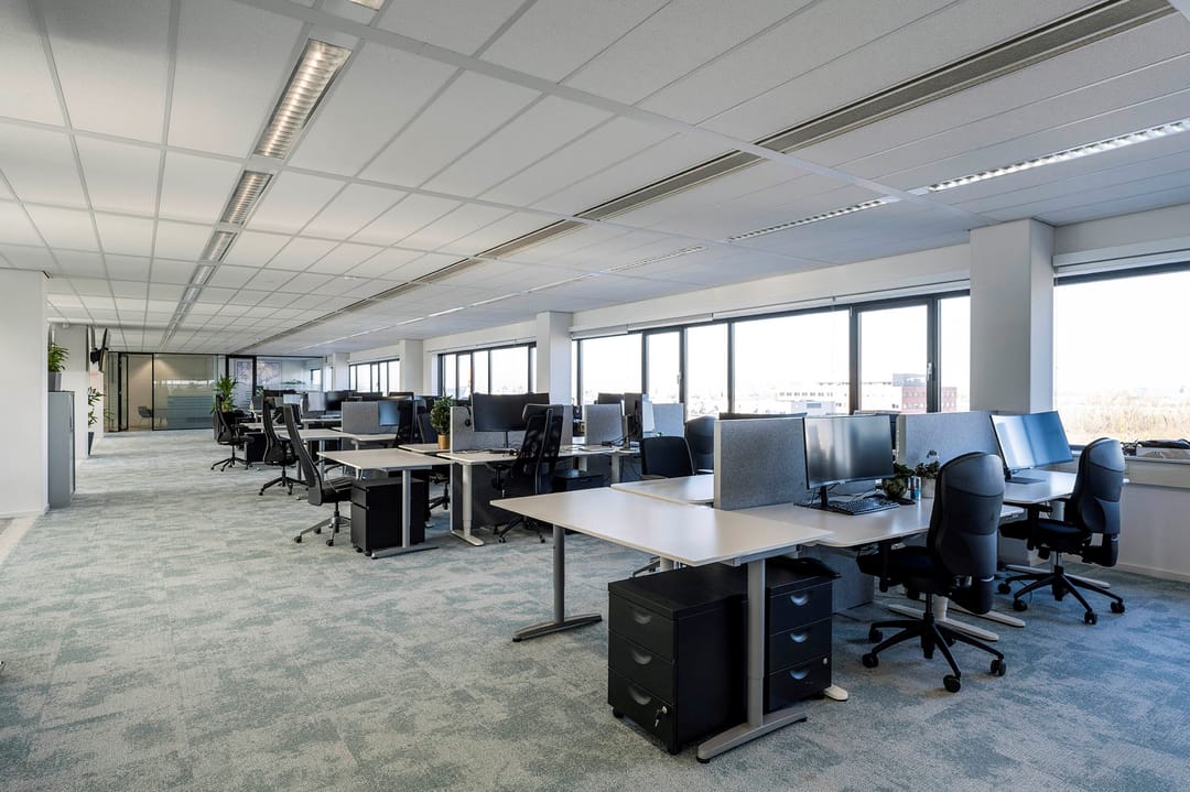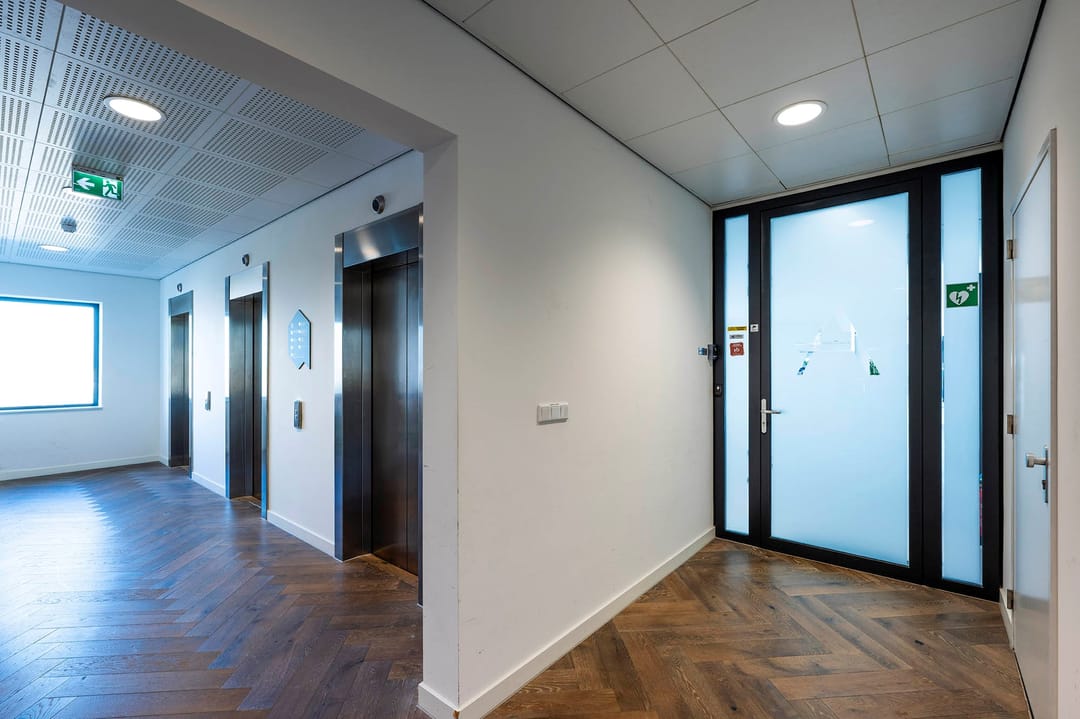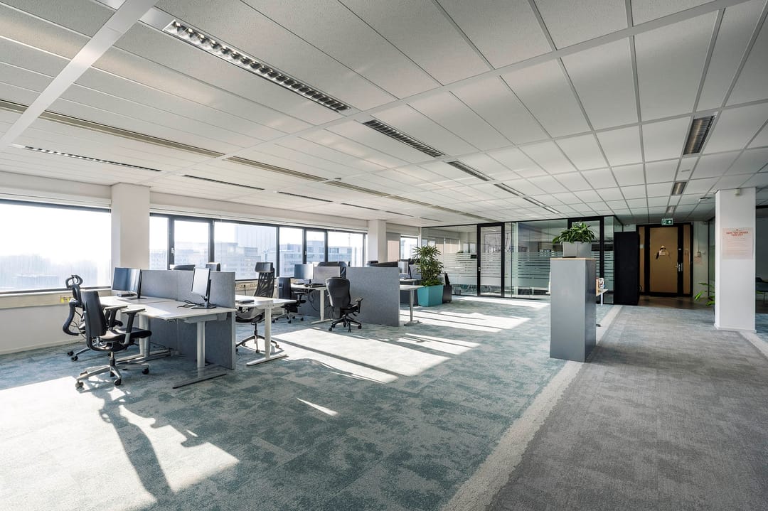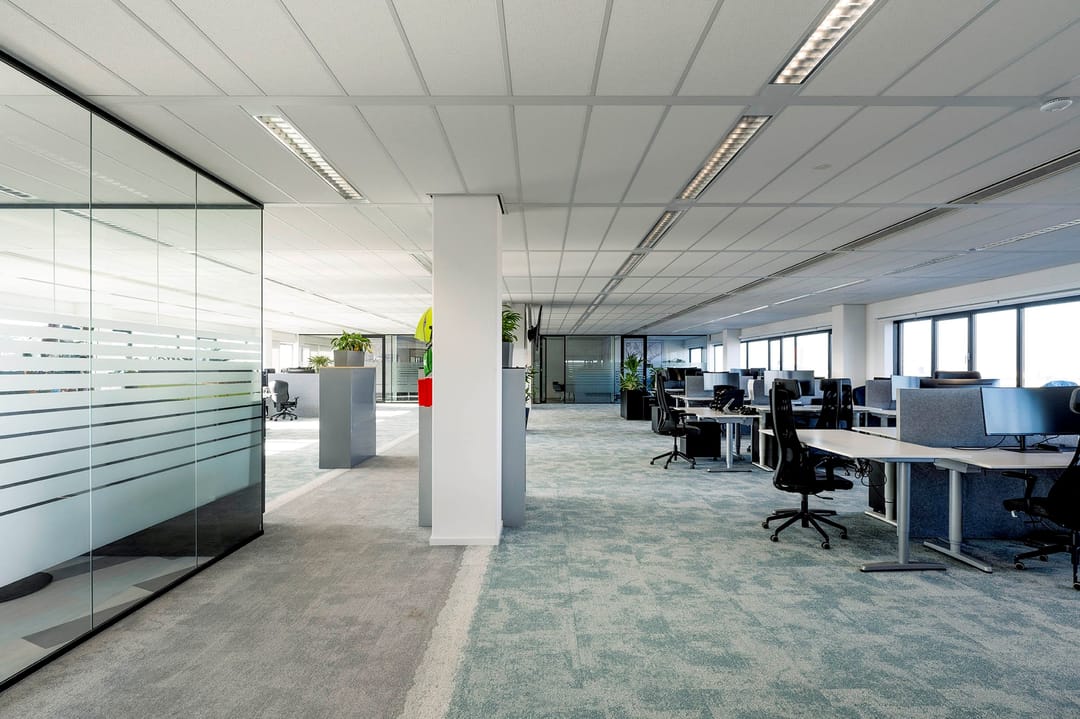 De verdieping is efficiënt ingedeeld met open werkruimte, overlegplekken en (kleinere) meetingruimtes. Dankzij de grote raampartijen beschikt de etage over veel daglicht en een rustige werkomgeving, waarbij het uitzicht en de hoogte bijdragen aan een prettig en professionele uitstraling voor zowel medewerkers als bezoekers.