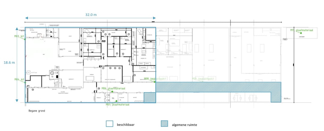 Het object wordt in casco staat verhuurd en is onder meer voorzien van de volgende voorzieningen/installaties welke om niet ter beschikking worden gesteld: