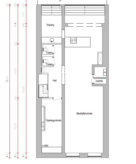 - Inbouwarmaturen, te openen ramen, kabelgoten, toilet, pantry, verwarming en kamerindeling