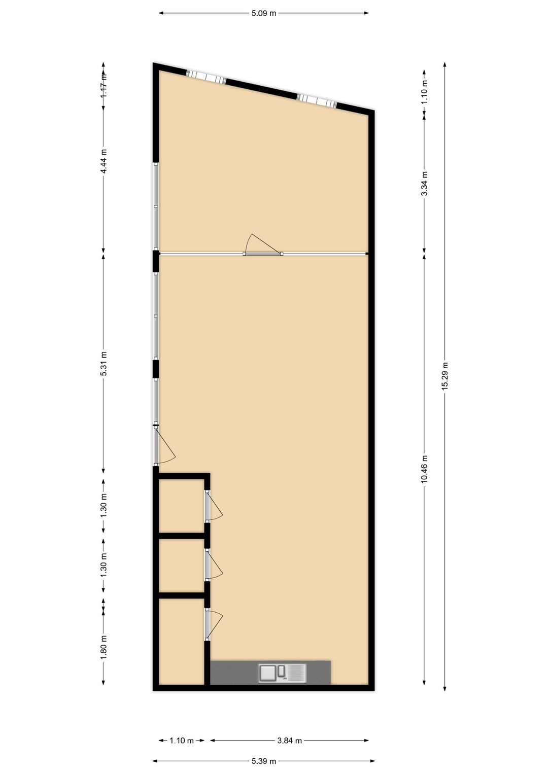 De oppervlakte is met grootst mogelijke zorgvuldigheid gemeten, maar biedt geen garantie en er kunnen geen rechten aan worden ontleend.